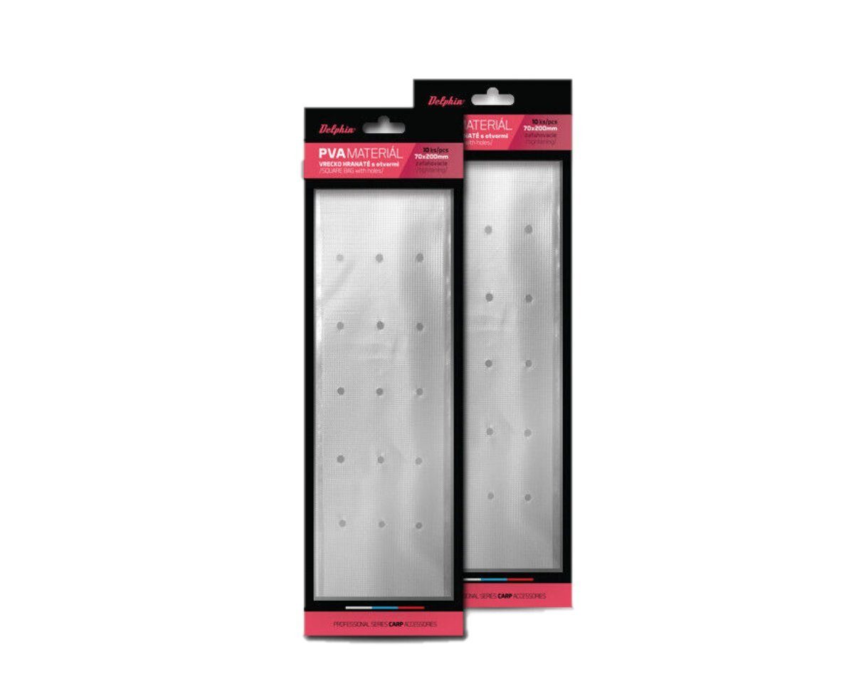 PVA Beutel eckig mit Öffnungen 70 x 200mm Der wasserlösliche viereckige PVA-Beutel von Delphin ist für PVA-unlösliche Köder wie Boilies, Pellets, Mais oder andere Partikel ausgelegt. Die Ködermischung wird zusammen mit dem Köder auf der Montage befestigt. Der PVA-Beutel löst sich direkt proportional zur Wassertemperatur auf und löst die Futtermischung in der Nähe des Köders auf, wodurch die Attraktivität des Karpfens erheblich erhöht wird. Warnung: PVA-Produkte sind wasserlöslich. Behandeln Sie sie daher nur mit trockenen Händen, um Verformungen oder Beschädigungen zu vermeiden.