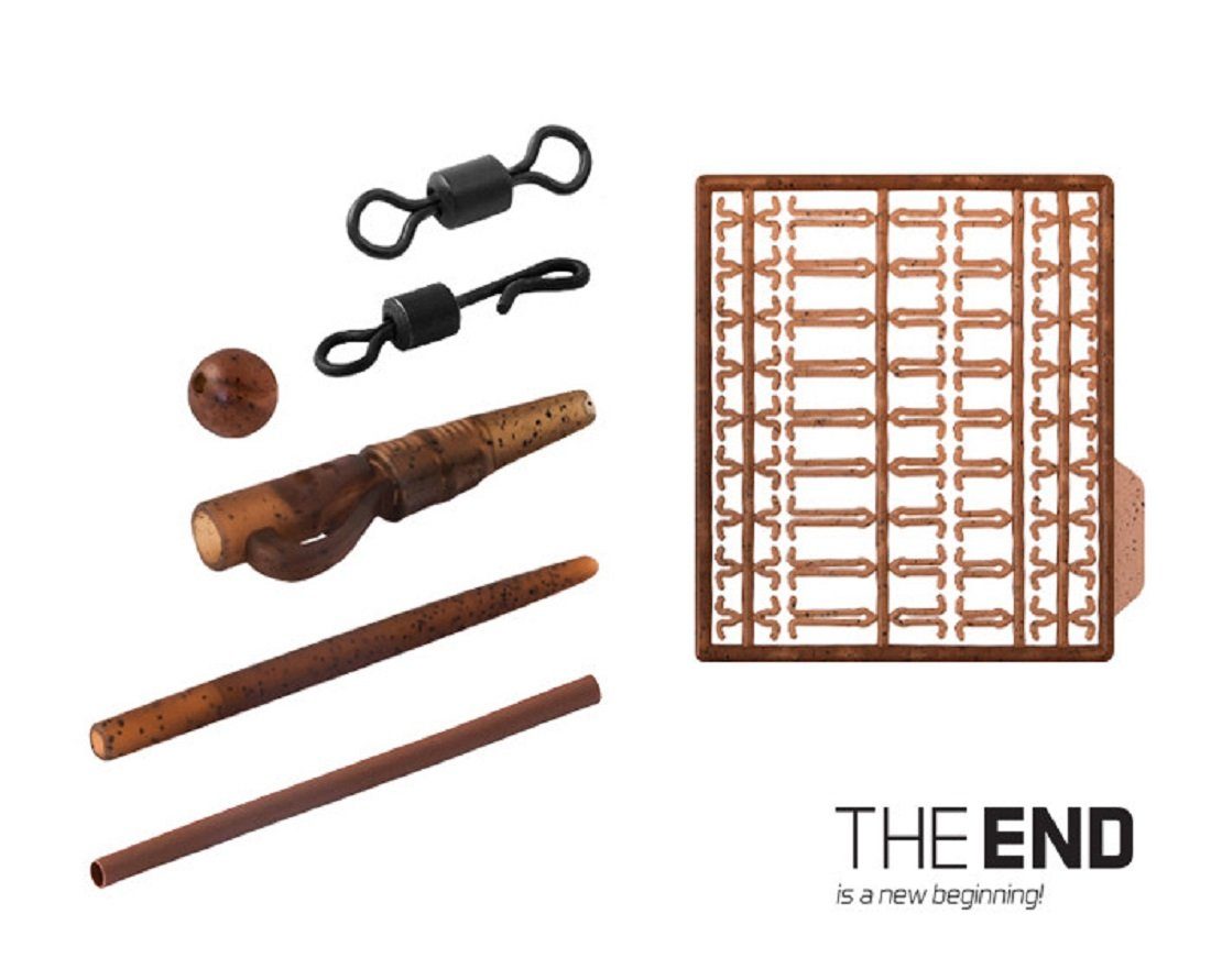 Karpfenmontage Set THE END 46-teilig. Dieses Karpfen-Angelgerät bietet im Tarn-G-Round-Design alles, was ein Karpfenangler am Wasser braucht. THE END Karpfen-Montage im Camouflage-G-Round-Design mit feinster Injektionstechnologie. Die ideale Lichtbrechung unter Wasser macht es fast unsichtbar. Die halbtransparente braune Farbe mit mattschwarzen Partikeln bietet das ideale Köderangebot. Hervorragende Verarbeitung, lange Lebensdauer für Ihre Rigs, ist das THE END! Weil diese End-Montage ein neuer Anfang ist!