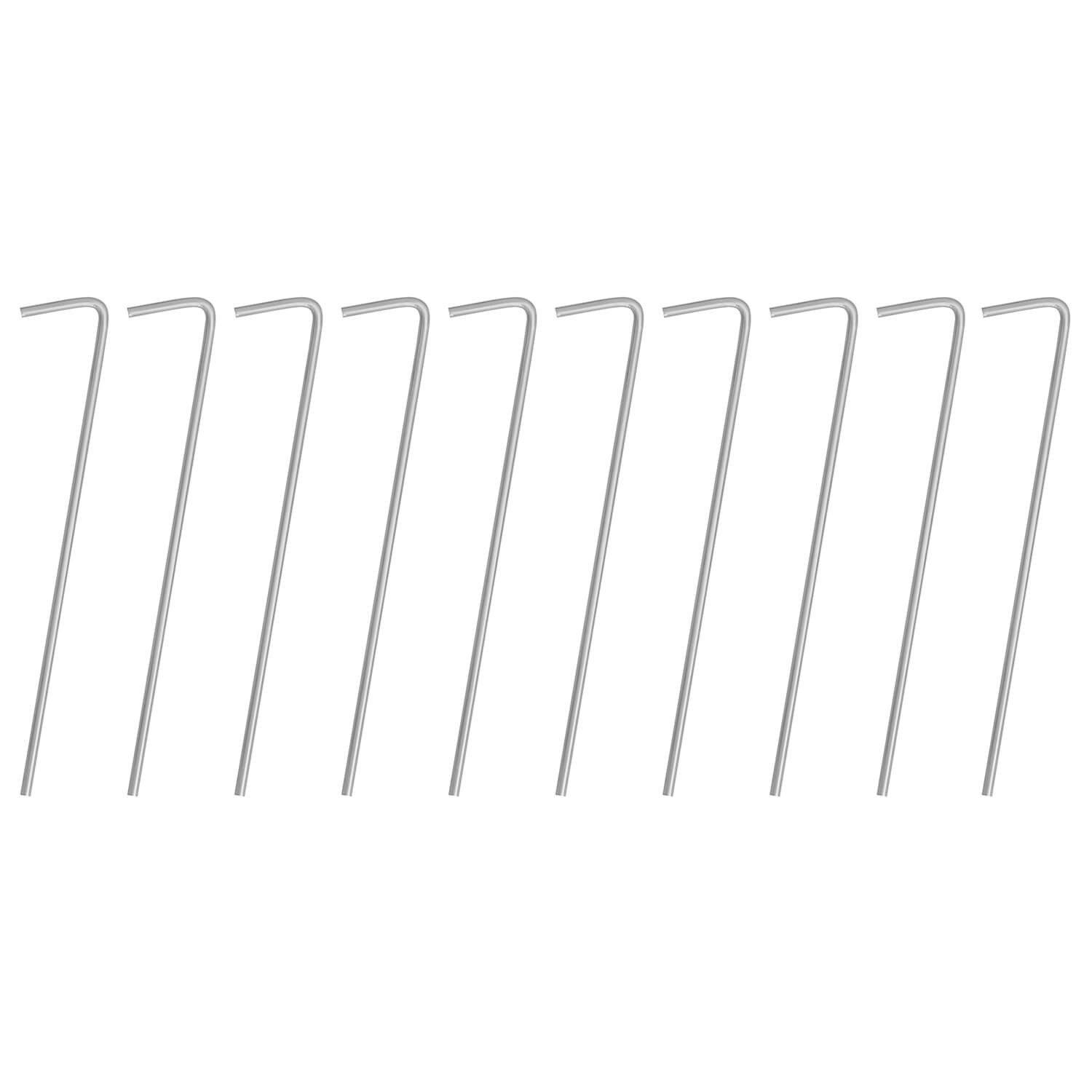 Gefertigt aus strapazierfähigem Stahl, bieten die Erdspieße maximale Stabilität und Widerstandsfähigkeit gegen alle Wetterbedingungen. Mit einem Durchmesser von 3,15 mm und einer Длина von 17 cm sind sie optimal dimensioniert, um einfach in den Boden zu gelangen und festen Halt zu bieten. Der praktische Haken von 2,5 cm Длина ermöglicht eine mühelose Befestigung aller gängigen Abspannleinen.