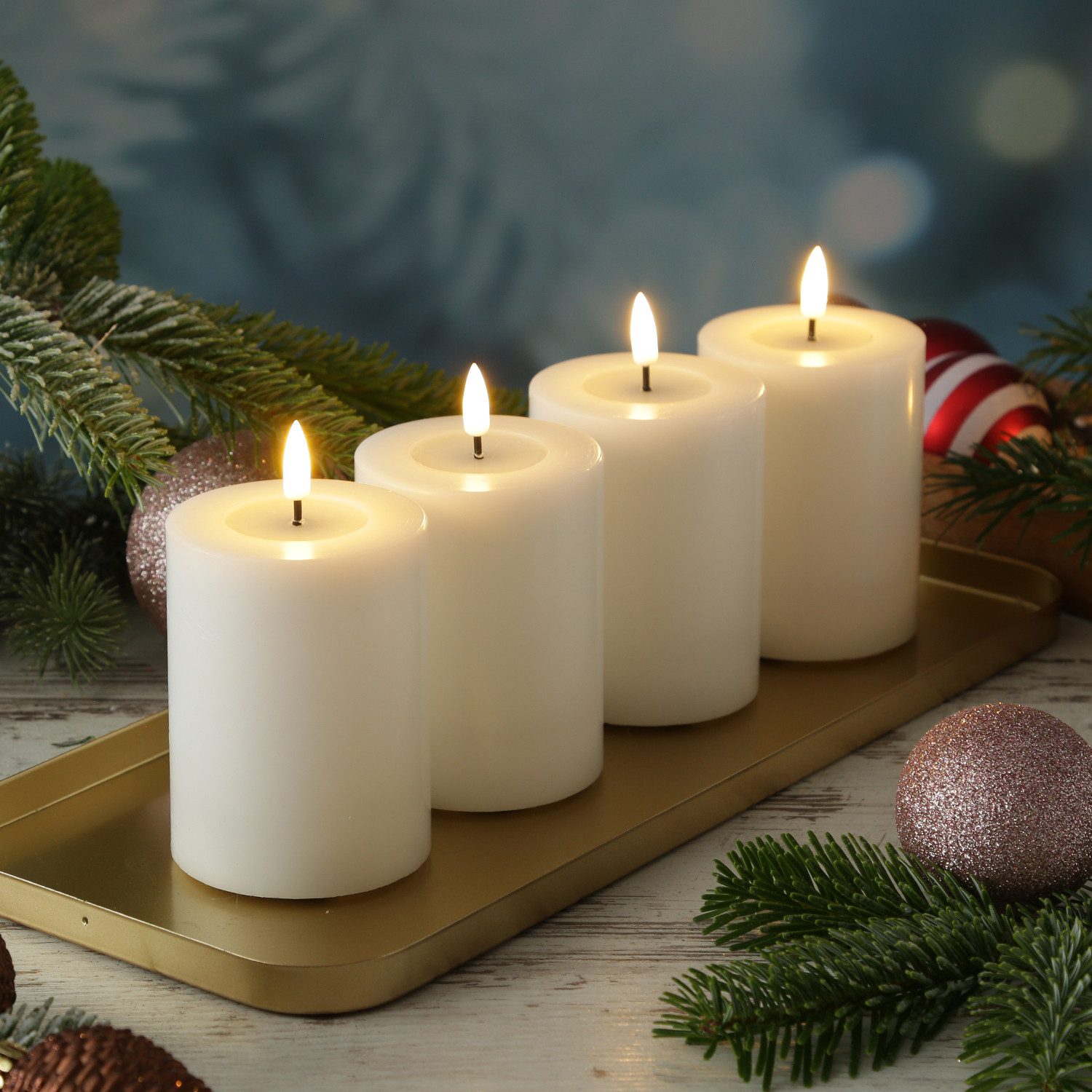 Betrieben wird jede Stumpenkerze mit jeweils zwei AA (Mignon) Batterien. Die Standardbatterien sind leistungsstark und so hält die Kerze mit bis zu 400 Stunden. Die Batterien sind im Lieferumfang enthalten.