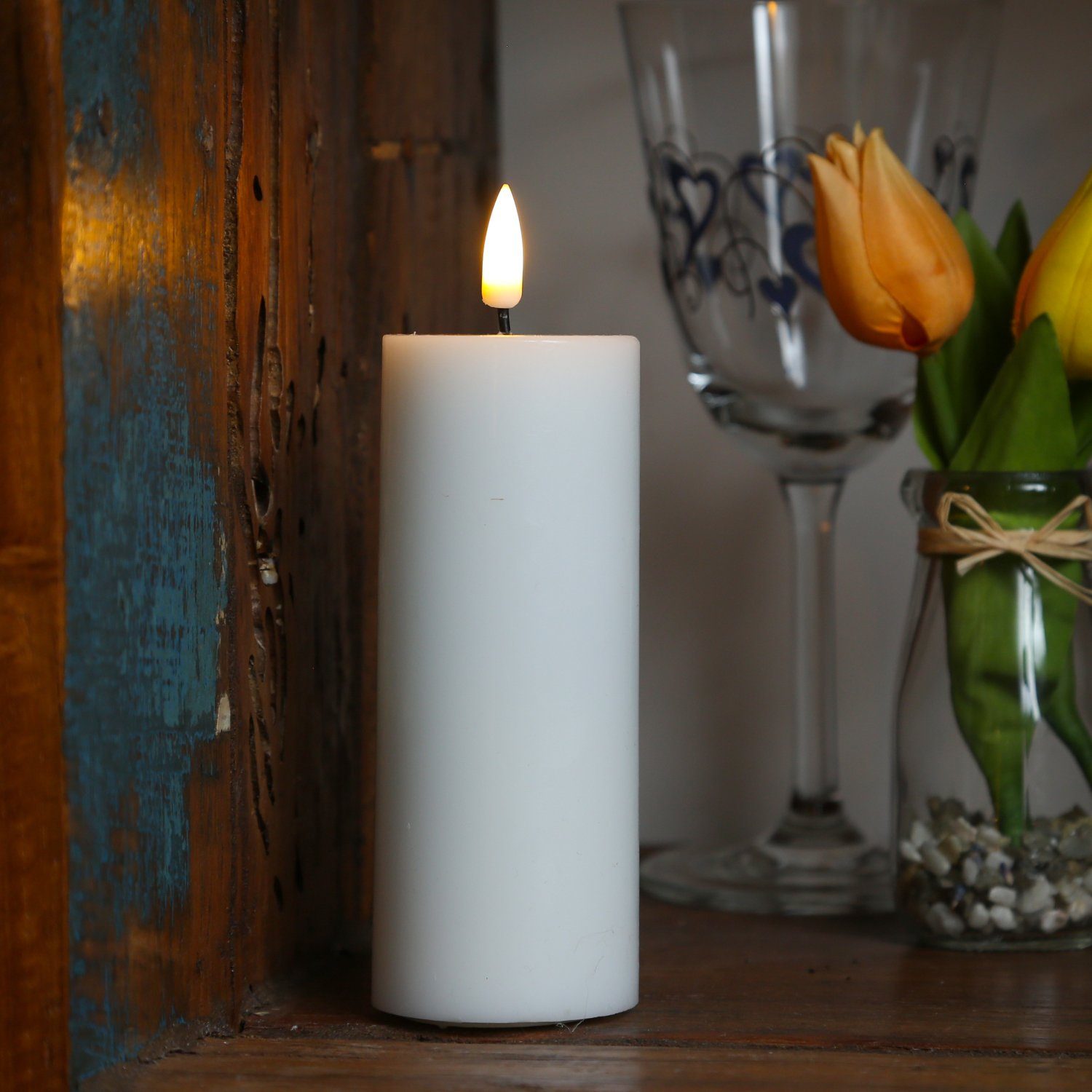 Diese LED Stumpenkerze ist perfekt für Deine Tischdekoration, in einer Laterne oder auf der Fensterbank geeignet. Egal wo Du die Stumpenkerze aufstellst, sie sorgt für eine besondere romantische und gemütliche Atmosphäre.