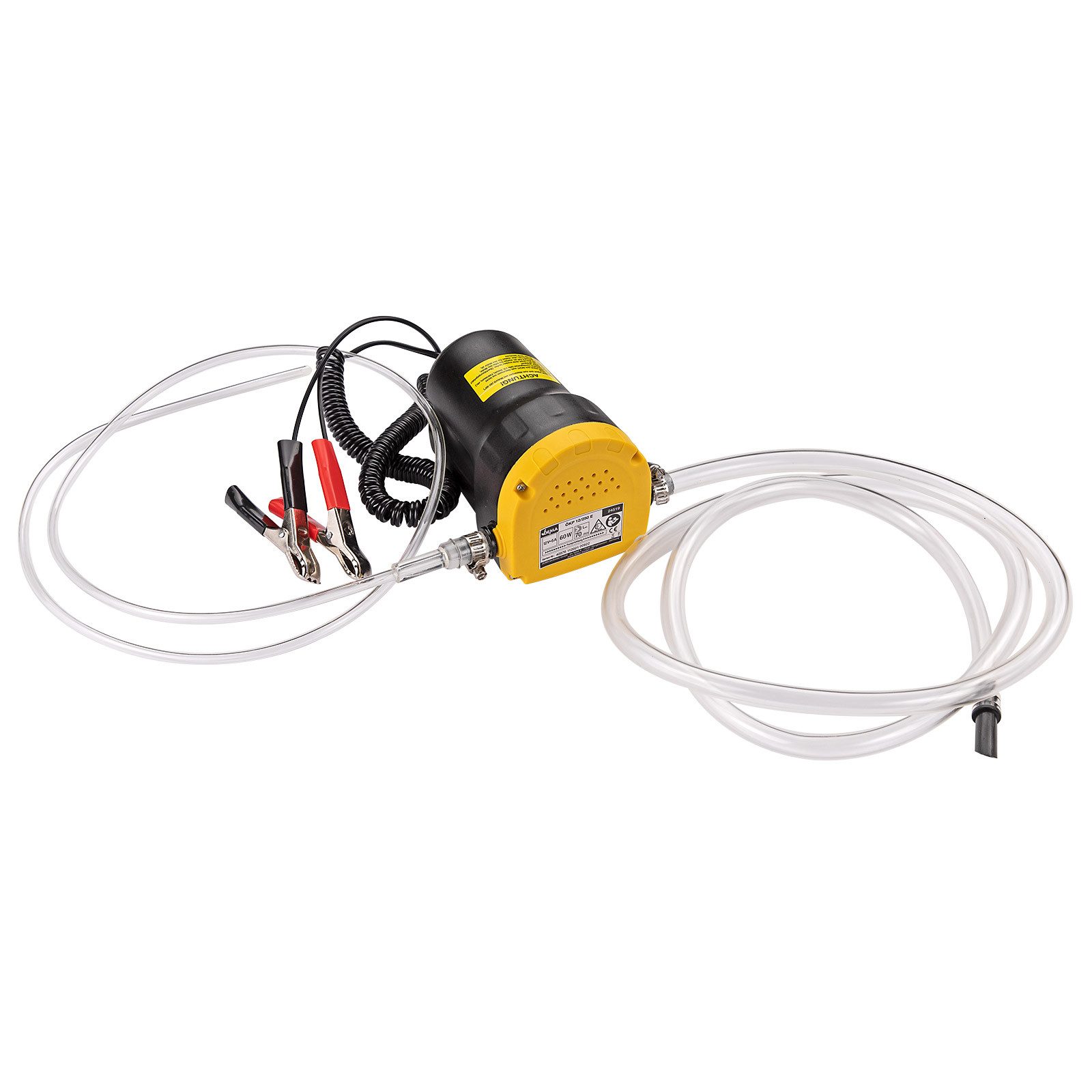 Die kompakte Bauform und der starke Motor der DEMA Öl- & Kraftstoff- Absaugpumpe 12V erfüllen zuverlässig die anfallenden Arbeiten. Das Spiralkabel und die Batterieklemmen ermöglichen schnellen und effektiven Einsatz.