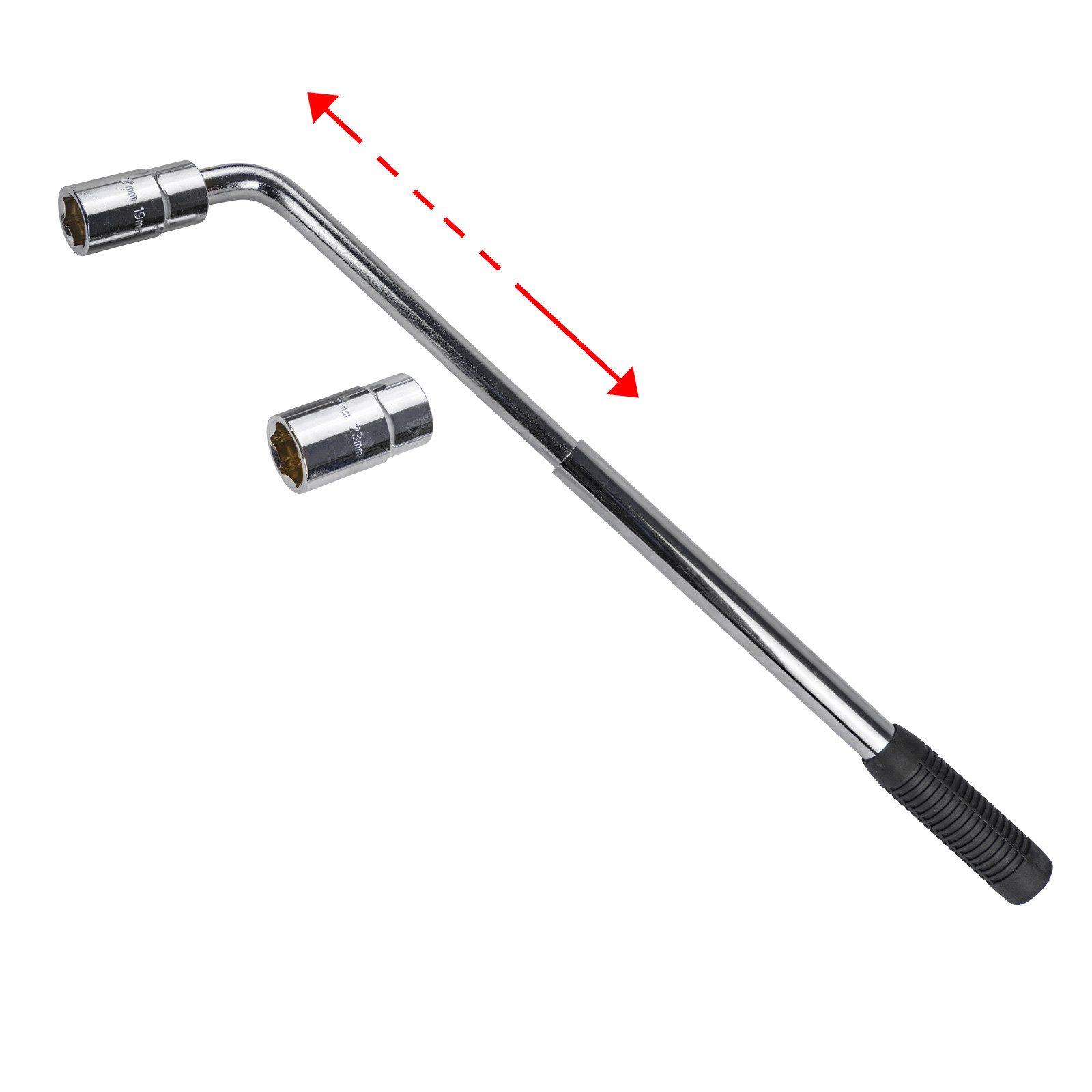 Original DEMA Radmutternschlüssel 1/2" Teleskop 350-530 mm. Sagen Sie teuren Rechnungen über Radwechsel endgültig adieu. Mit Ihrem neuen Teleskop Radmutternschlüssel erledigen Sie diese Arbeiten schnell und ohne großen Kraftaufwand selber. Auch sehr festsitzende Radmuttern/-Schrauben lösen Sie im Handumdrehen und sparen so bares Geld. Über die 2 steckbaren Doppelnüsse haben Sie zudem immer die passende Schlüsselgröße parat.