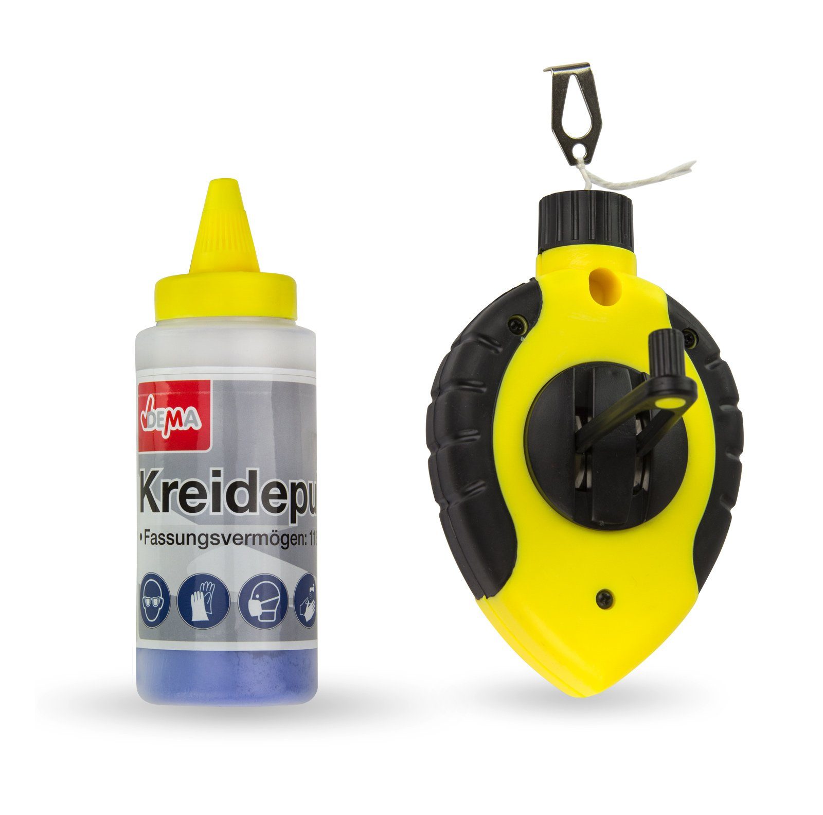 Original DEMA Schlagschnur 30 m inkl. Kreidepulver. Spannen Sie die Schnur und lassen diese dann winkelrecht zum Boden schnalzen. So "schlagen" Sie in einem Zug eine gerade, sichtbare Linie zwischen zwei Punkten. Unentbehrlich bei Renovierungsarbeiten, Neubau, Ausbau, Zaunbau, Dachsanierung usw.
