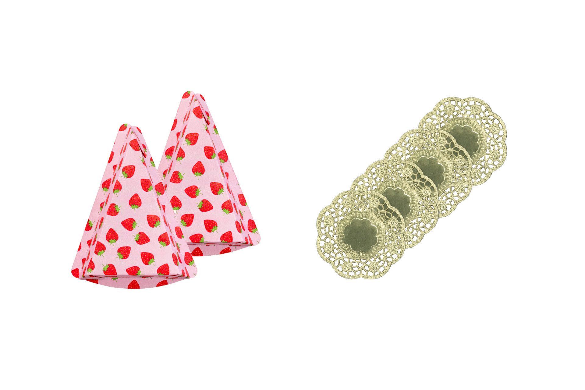 Tortenstückchen mit Erdbeermuster - Inklusive Tassendeckchen in Gold