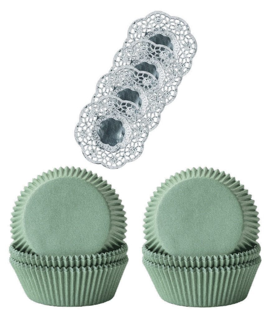 2er Set Muffinförmchen Jade + 4 Tassendeckchen in Silber