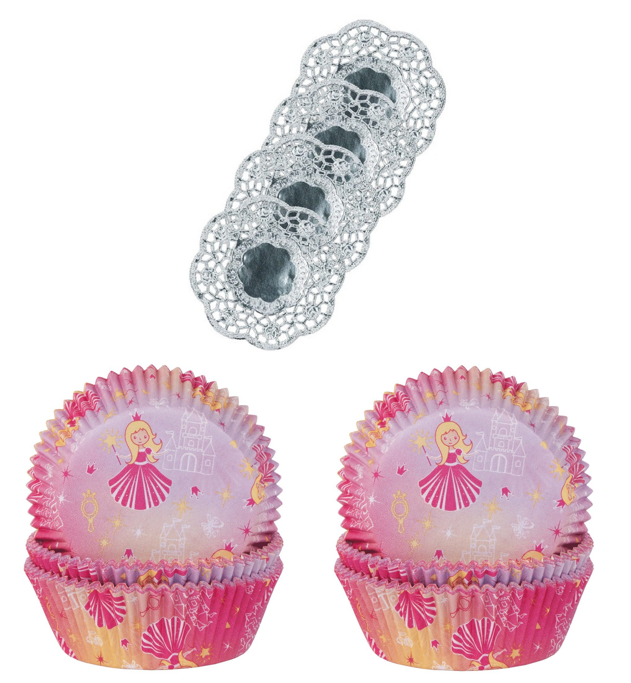 2er Set Muffinförmchen Prinzessin + 4 Tassendeckchen in Silber