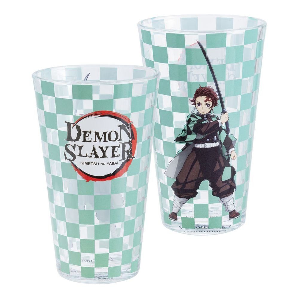 Das Glas zeigt Tanjiro Kamado vor dem typischen Karomuster.