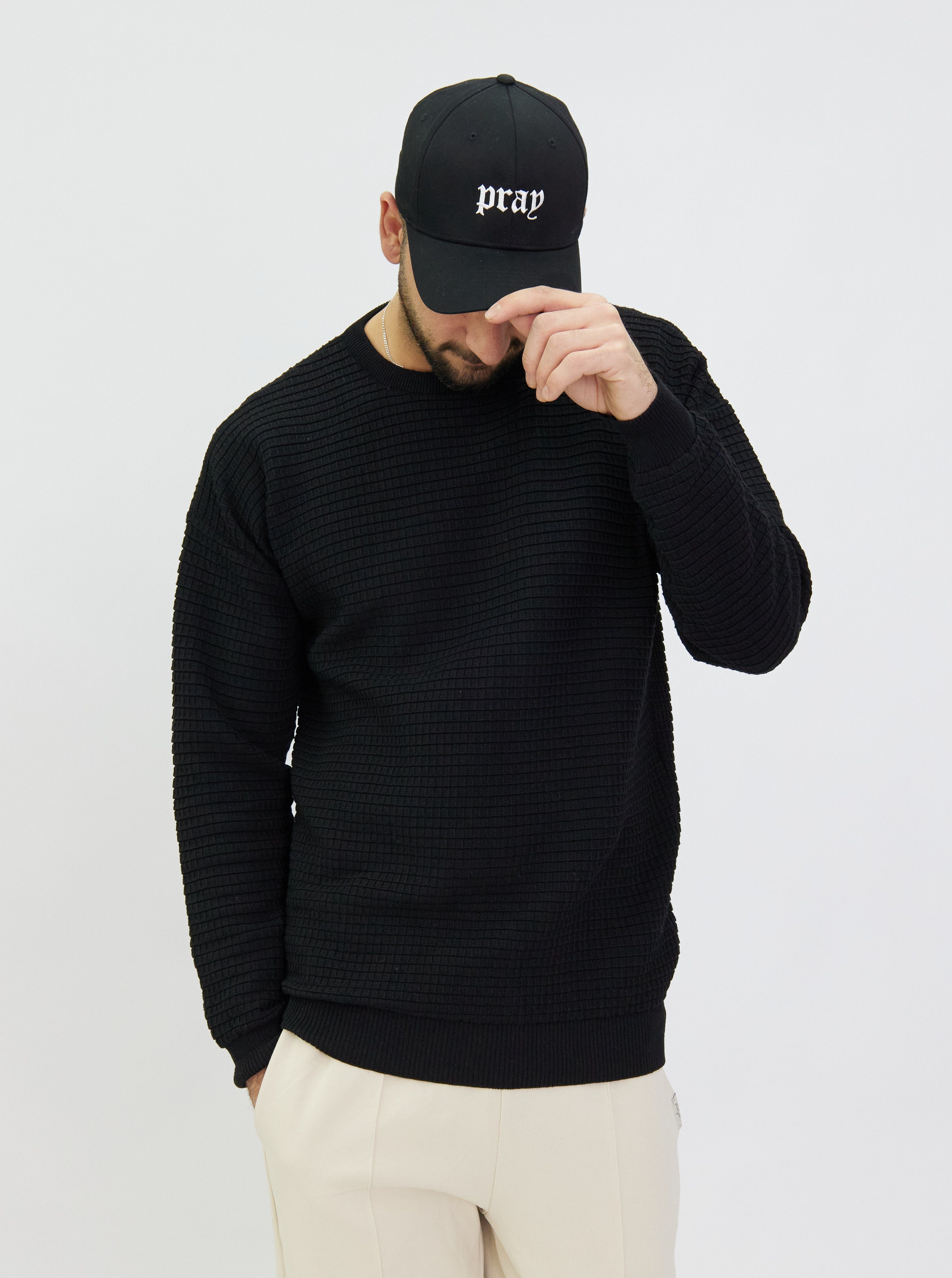 DETAILS & HIGHLIGHTS: Rundhalskragen, Basic-Optik mit Wabenmuster, feinmaschig gestrickt