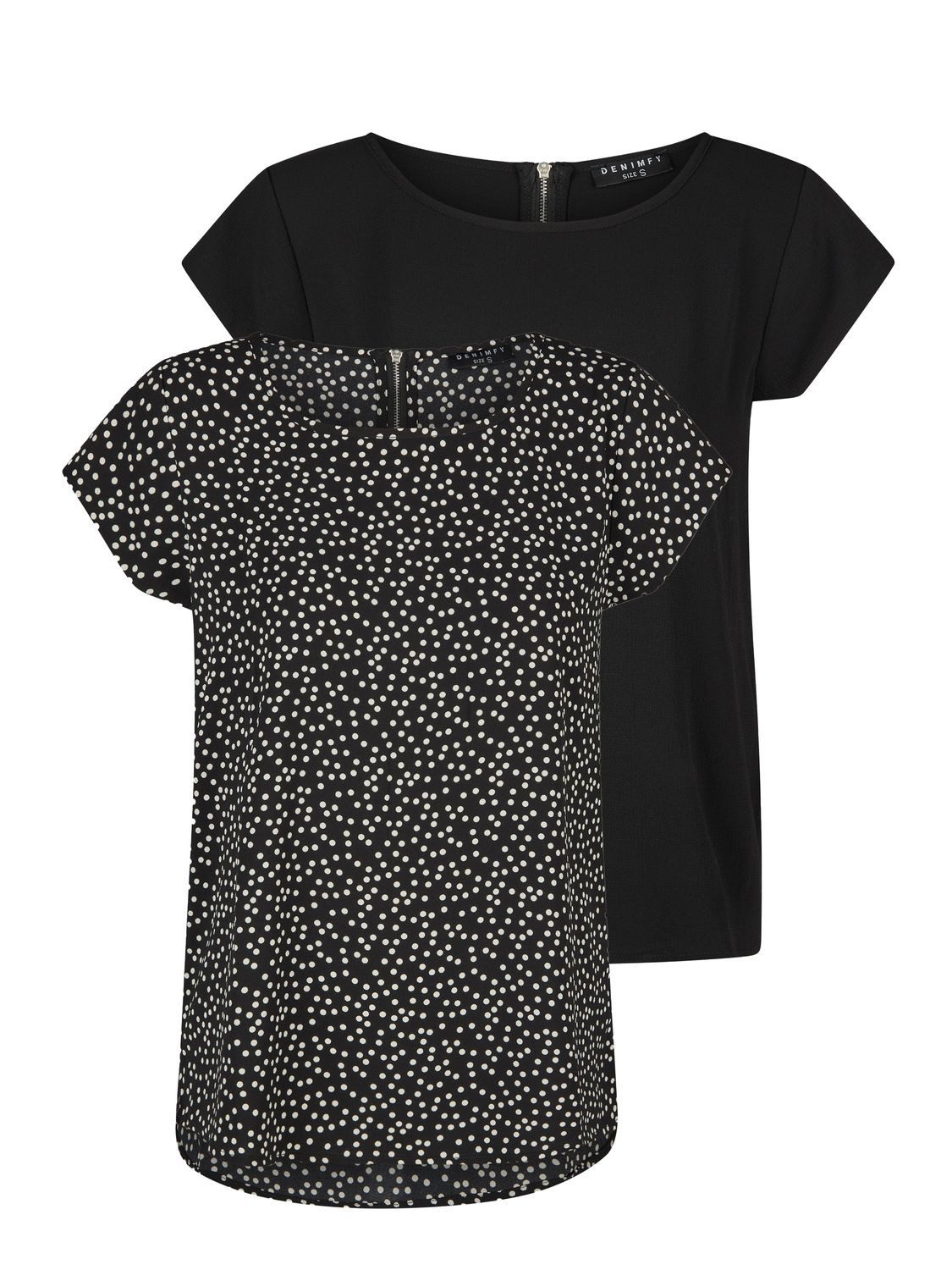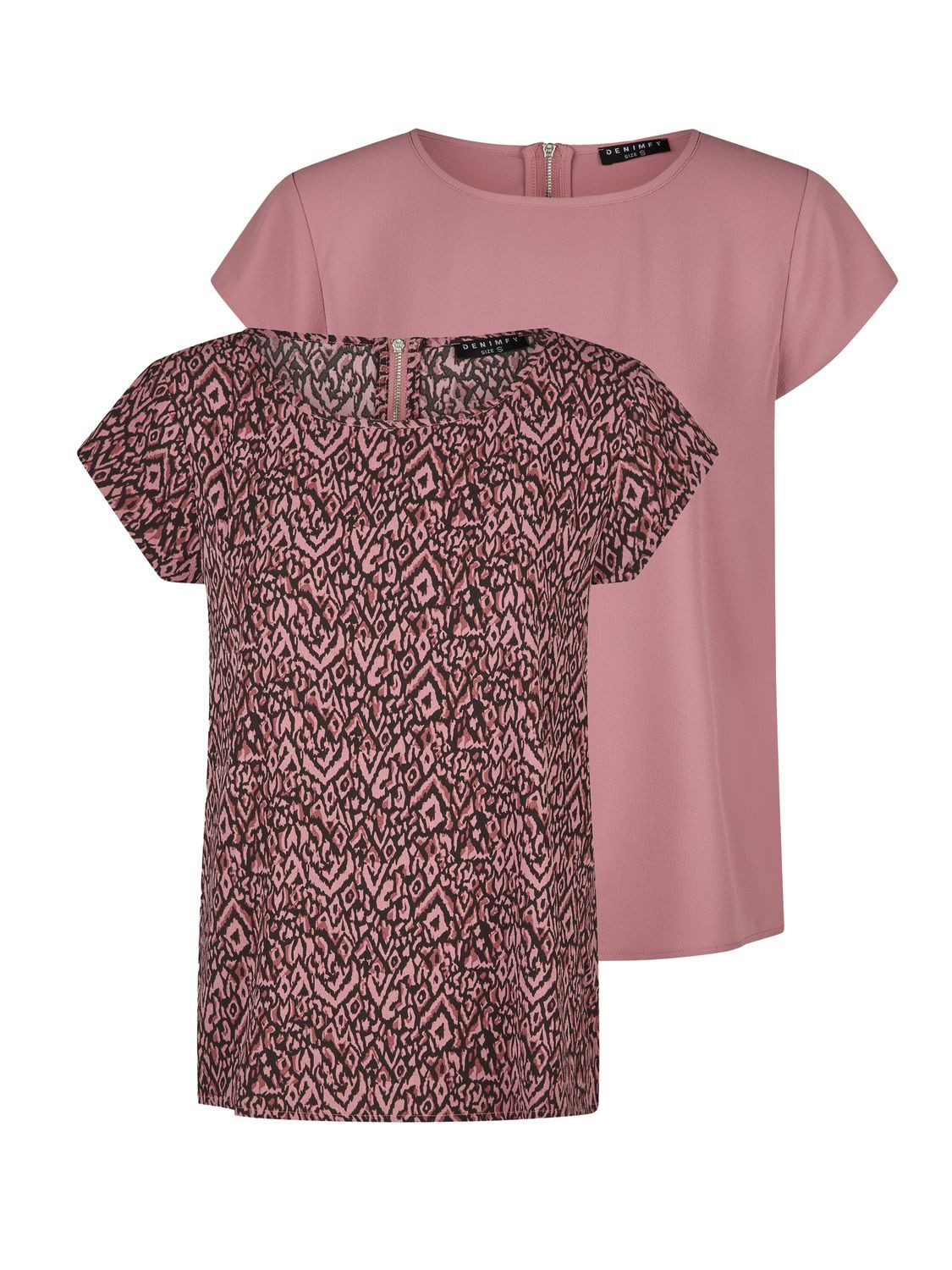 Die Shirts des Labels DENIMFY erhalten Sie in vielen frischen Farbkombinationen. Wählen Sie nach Gusto aus Schwarz, Rose, Grün und Navy aus. Sie bekommen dieses Shirt im 2er-Pack. Enthalten ist jeweils ein Oberteil in einer Einfarbigen und in einer gemusterten Ausführung. Ebenfalls breit gefächert ist das Angebot die Größen betreffend. Neben den klassischen Größen S, M, L und XL gibt es das Oberteil ebenfalls in der Übergröße XXL.