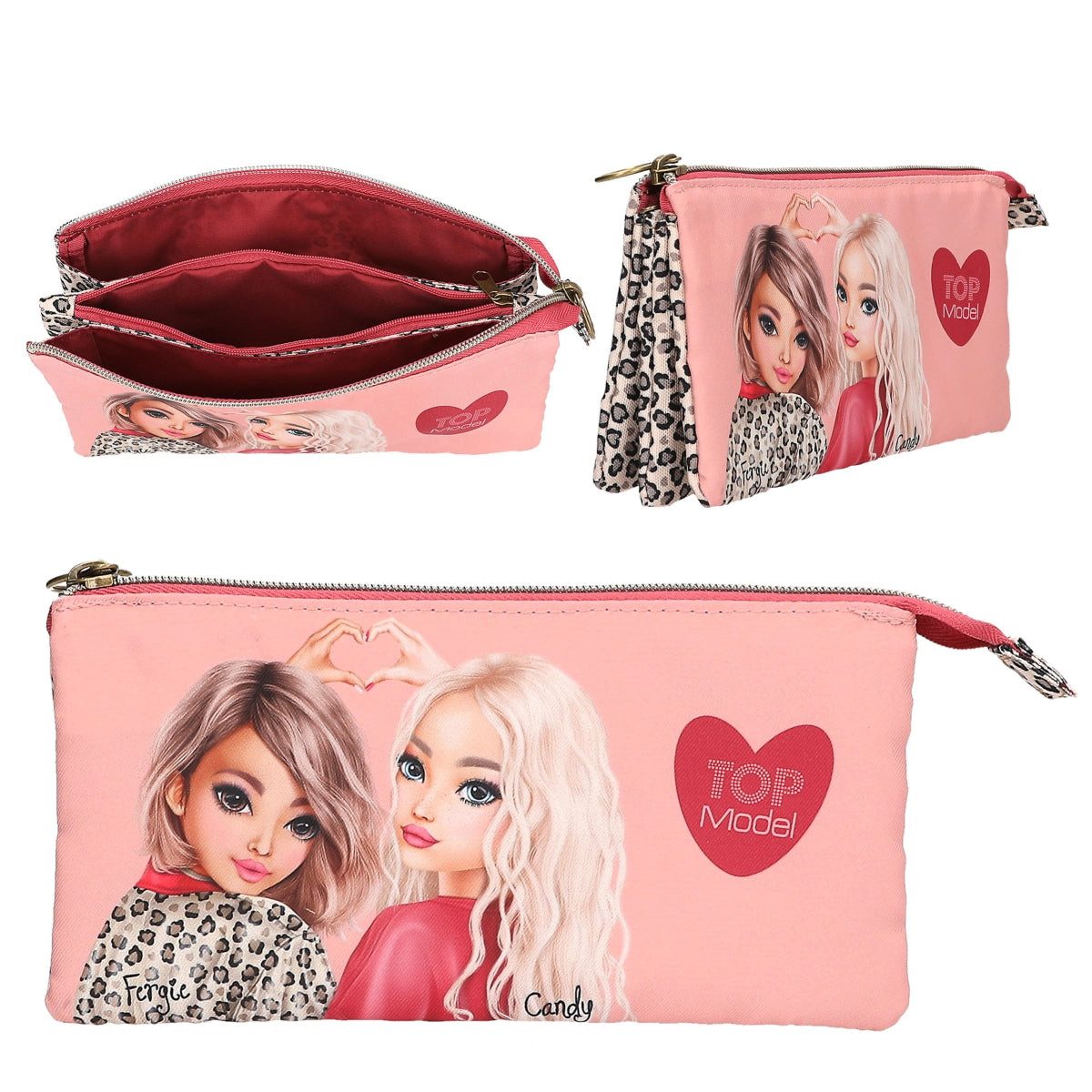 Ein Herz für Leo-Looks! Diese rosafarbene TOPModel-Schlampertasche ist mehr als nur ein Accessoire - sie ist dein Statement! Mit dem stylischen Doppel-Modelmotiv auf der Front und dem süßen Herz mit Logo-Druck wirst du garantiert alle Blicke auf dich ziehen.