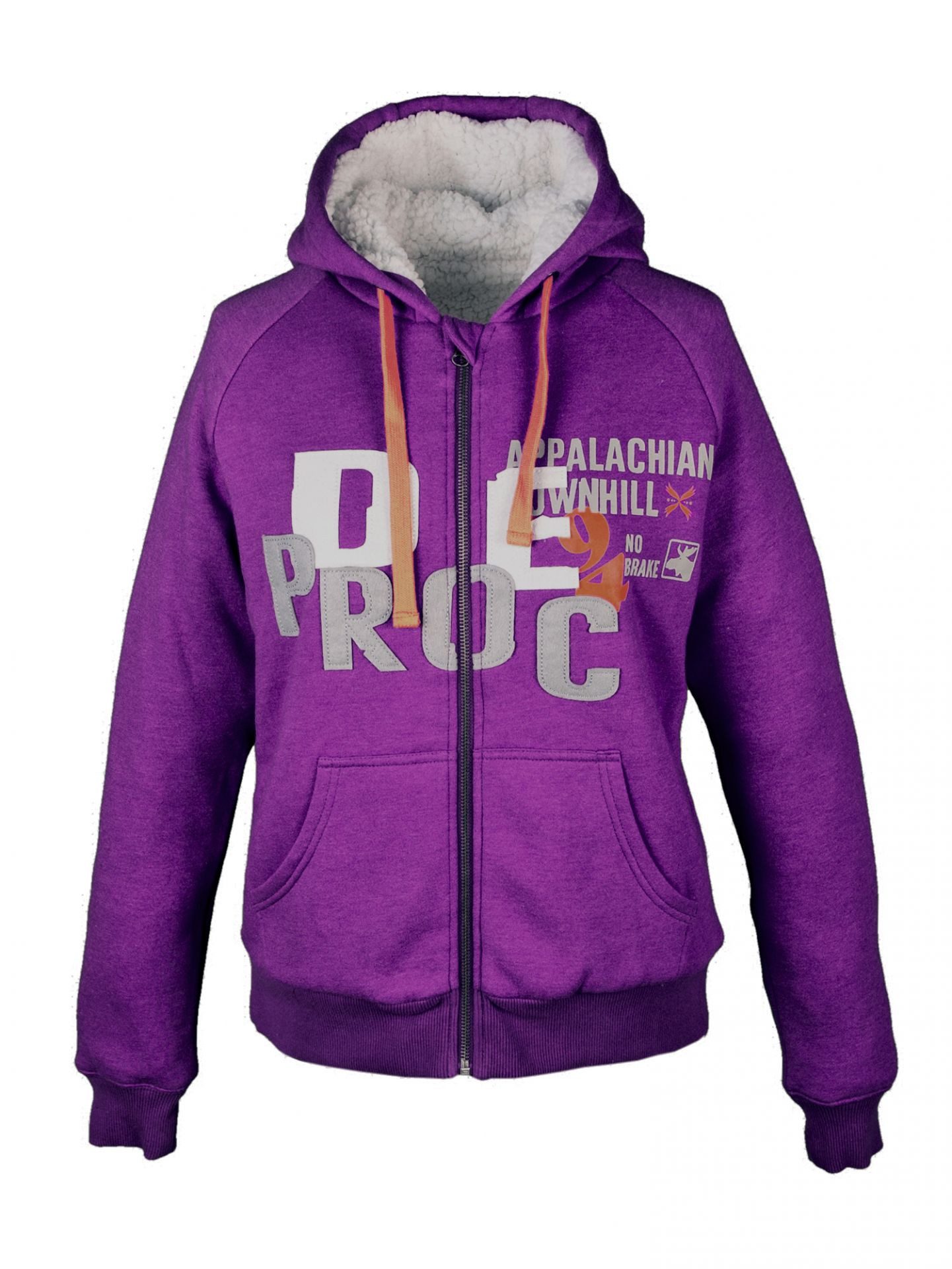 Der sportliche Deproc Hoody für Damen wird das neue Lieblingsstück für die Wintersaison! Trendig geschnitten mit einem kuscheligen Fleece in Lammfelloptik auf der Innenseite setzt dieses Kleidungsstück auch als wärmender Windbreaker Akzente in der kalten Jahreszeit. Die Ärmel im Raglanschnitt sind bis zur Halspartie angesetzt, sodass maximale Bewegungsfreiheit gewährleistet ist. Der Hoody von Deproc ist somit bestens geeignet für sportliche Outdooraktivitäten bei niedrigen Temperaturen. Gerade bei bewegungsintensivem Skaten oder beim Eislauf ist der Hoody sehr bequem zu tragen. Die Strickbündchen sind mit Daumenlöchern ausgestattet und verhindern ein unangenehmes Hochrutschen der Ärmel. Der Saum ist ebenfalls im Rippstrick gearbeitet, sodass jederzeit für einen sicheren Sitz gesorgt ist. Bei kaltem und windigem Wetter bietet die feste Kapuze Schutz. Sie ist ebenfalls mit hochflorigem Fleece ausgestattet. In den weiten Kängurutaschen können die Hände angenehm aufgewärmt werden. Die Passform ist sportlich feminin und ganz leicht tailliert zugeschnitten. Die Oberfläche aus Baumwolle ist pflegeleicht und wirkt in Kombination mit EPS angenehm isolierend. Die Logostickerei mit Druckelementen vom Outdoorspezialisten Deproc auf der Frontseite ist ein stylisher Blickfang und setzt Akzente zu den modischen Farben. Dieser Hoody ist in Jasmingrün und Purple erhältlich. Für diejenigen, die dezentere Töne bevorzugen, ist er auch in Weiß verfügbar. Всеs in allem: Sportliches Hoody in junger Optik mit kuscheligem, hochflorigem Lammoptik Innenfleece.