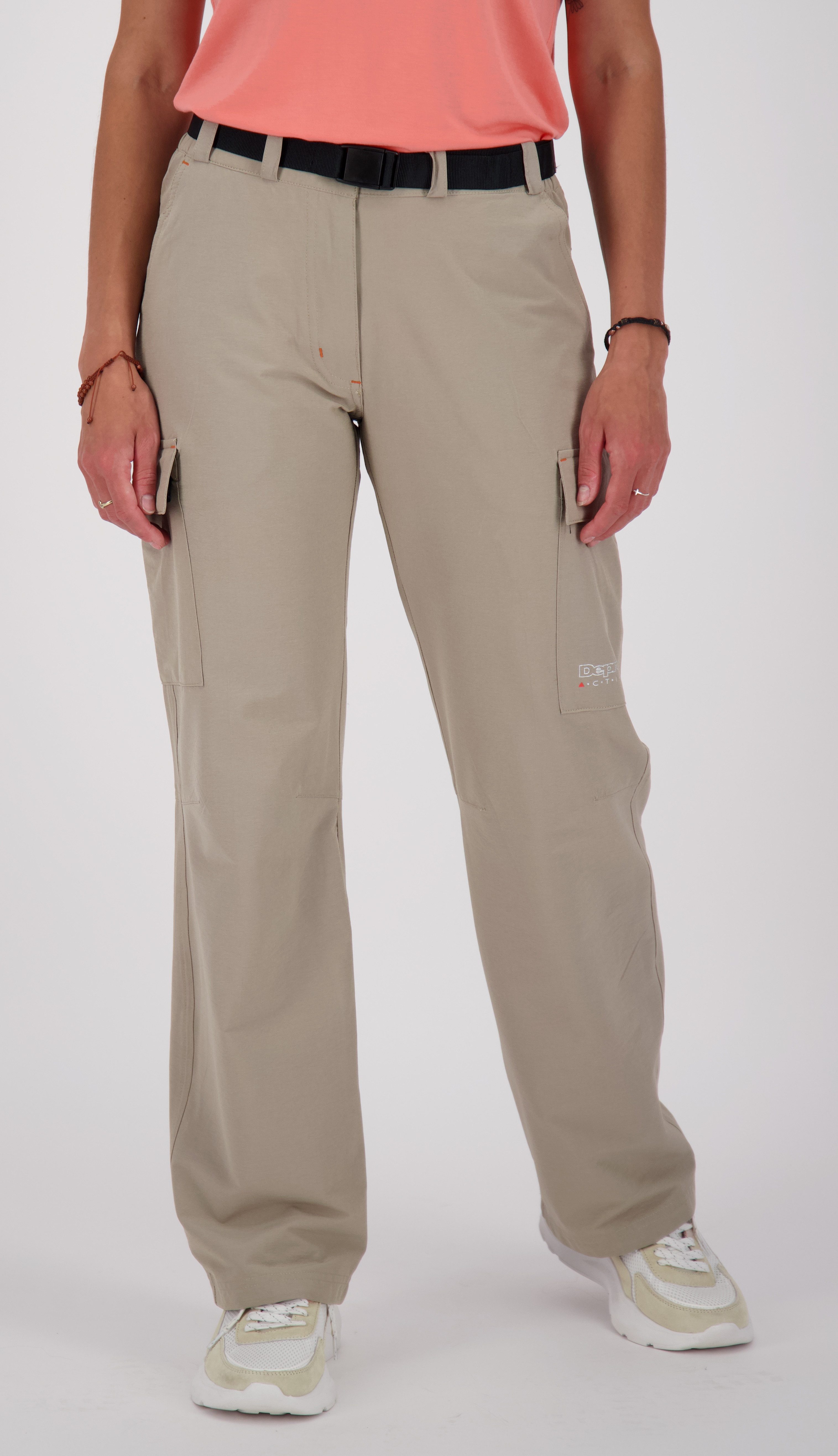 Diese leichte, unempfindliche und elastische Damen Wanderhose von DEPROC ist genau richtig für den Einsatz in der Natur. Sie lässt sich mittels Krempelfunktion bequem in der Beinhöhe fixieren und sich damit an die jeweilige Situation anpassen. Zudem überzeugt sie mit einem guten Sitz. Deshalb gehört die Hose in jede gute Ausrüstung für outdoorbegeisterte Damen. Der Stoff besteht aus leichtem Polyester-Elasthan-Gewebe. Der Elastan-Anteil machen den Stoff wunderbar elastisch. Er passt sich jeder Bewegung dynamisch an und engt niemals ein. Polyester garantiert Reißfestigkeit und Robustheit des Gewebes. Die Wanderhose für Damen ist optimal für lange Wandertouren bei hohen Temperaturen. Sie fällt locker und ist so leicht, dass kein Wärmestau entstehen kann. Die lange Outdoorhose schützt außerdem vor der Sonneneinstrahlung und vor Abschürfungen. Sie ist ideal bei Touren im Gebirge, wenn unwegsames Gelände durchquert werden muss. Wenn es plötzlich auf einer Tour zu regnen beginnt und kein Unterstand in Sicht ist, wird die Wanderhose zwar zuerst einmal klitschnass - aber sie trocknet überraschend schnell wieder! Zur Not, wenn keine zweite Outdoorhose zum Wechseln im Rucksack ist, wird die Trekkinghose sogar auf der Haut abtrocknen. Je wärmer es draußen ist, desto schneller funktioniert dies! Eine lange Outdoorhose ist immer ein wirksamer Schutz vor Zecken. Insbesondere in feuchten Auenwäldern oder Wiesen mit hohen Gräsern halten sich oft Zecken auf, die beim Vorbeigehen ganz leicht abgestreift werden. Am gefährlichsten sind in dieser Hinsicht das Frühjahr und die ersten Herbstmonate. Besonders im Urlaub ist die Trekkinghose unschlagbar praktisch. Der Stoff ist so dünn, dass die Outdoorhose extrem klein zusammengefaltet werden kann und im Gepäck kaum Platz braucht. Nach der Wäsche ist es nicht nötig, die Wanderhose zu bügeln. Es ist vollkommen ausreichend, sie glatt aufzuhängen. Schon ein paar Stunden später ist sie trocken und kann wieder getragen werden. Mithilfe eines Webbandgürtels ist die Weite der Wanderhose im Bund stufenlos regulierbar. Der Gürtel ist weich und passt sich dem Körper an. Auch im Sitzen wie beispielsweise auf einer längeren Autofahrt schneidet der Bund nicht ein. Die Outdoorhose von Deproc ist klassisch und sportlich zugleich geschnitten, ohne zu rustikal zu wirken. Die Passform ist sportlich gerade geschnitten und bietet doch gleichzeitig erstklassigen Tragekomfort. Sogar in der Stadt zum Restaurantbesuch, auf Ausstellungen oder einfach beim gemütlichen Beisammensein mit Freunden ist man mit der Outdoorhose Kentville long gut und sportiv gekleidet. Die Hose lässt sich sehr schön mit passenden Funktionshemden oder Funktionsshirts von Deproc kombinieren. Ein unschlagbarer Vorteil der Funktionsbekleidung liegt darin, dass sie nicht nur sportlich schick aussieht, sondern absolut pflegeleicht ist. Das moderne Hightech-Gewebe saugt keine Nässe auf, trocknet rasant und ist knitterfrei. Praktische Taschen machen die Outdoorhose zum perfekten Allrounder für den ganzen Tag. Viel Stauraum gibt es in zwei großen Einschubtaschen auf jeder Seite. Außerdem hat die Wanderhose auf der Rückseite eine Gesäßtasche, die per Reißverschluss verschließbar ist.