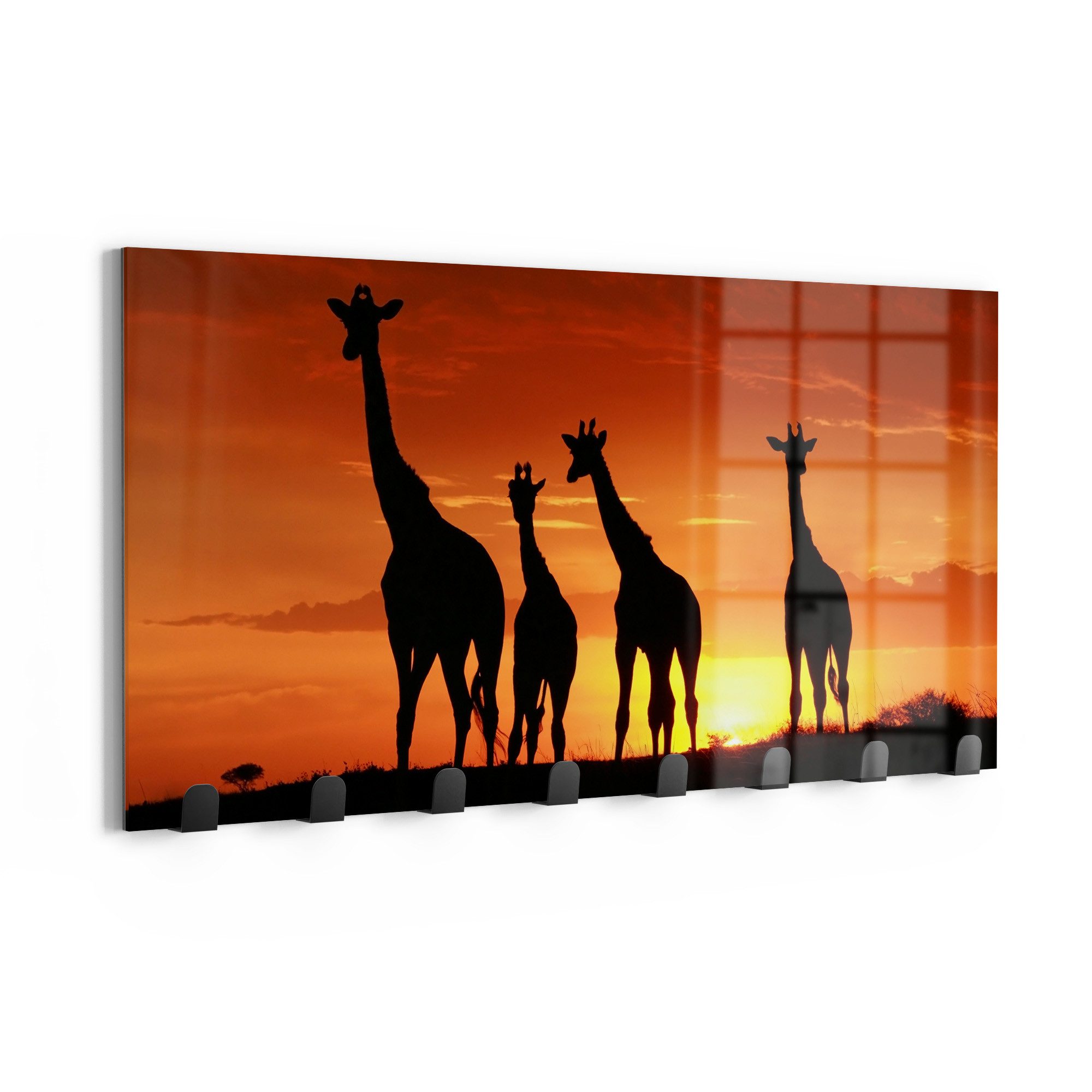 DEQORI Kleiderhaken 'Abend in der Savanne', Glas Garderobe Paneel magnetisch beschreibbar