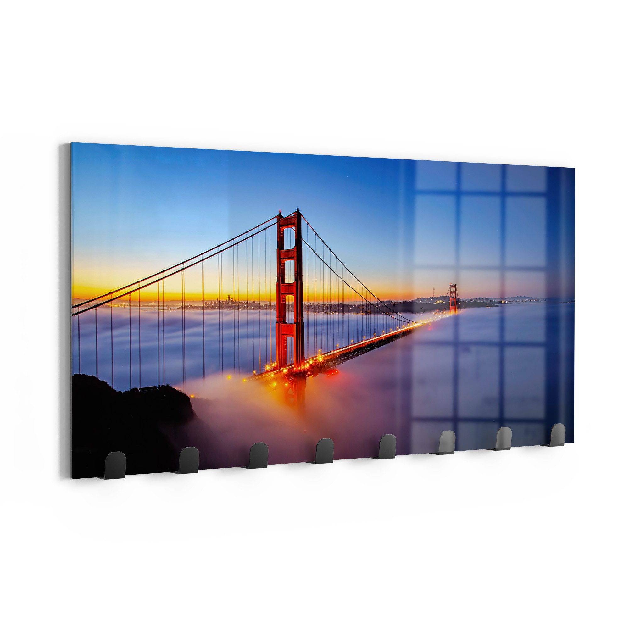 DEQORI Kleiderhaken 'Brücke im Nebelmorgen', Glas Garderobe Paneel magnetisch beschreibbar