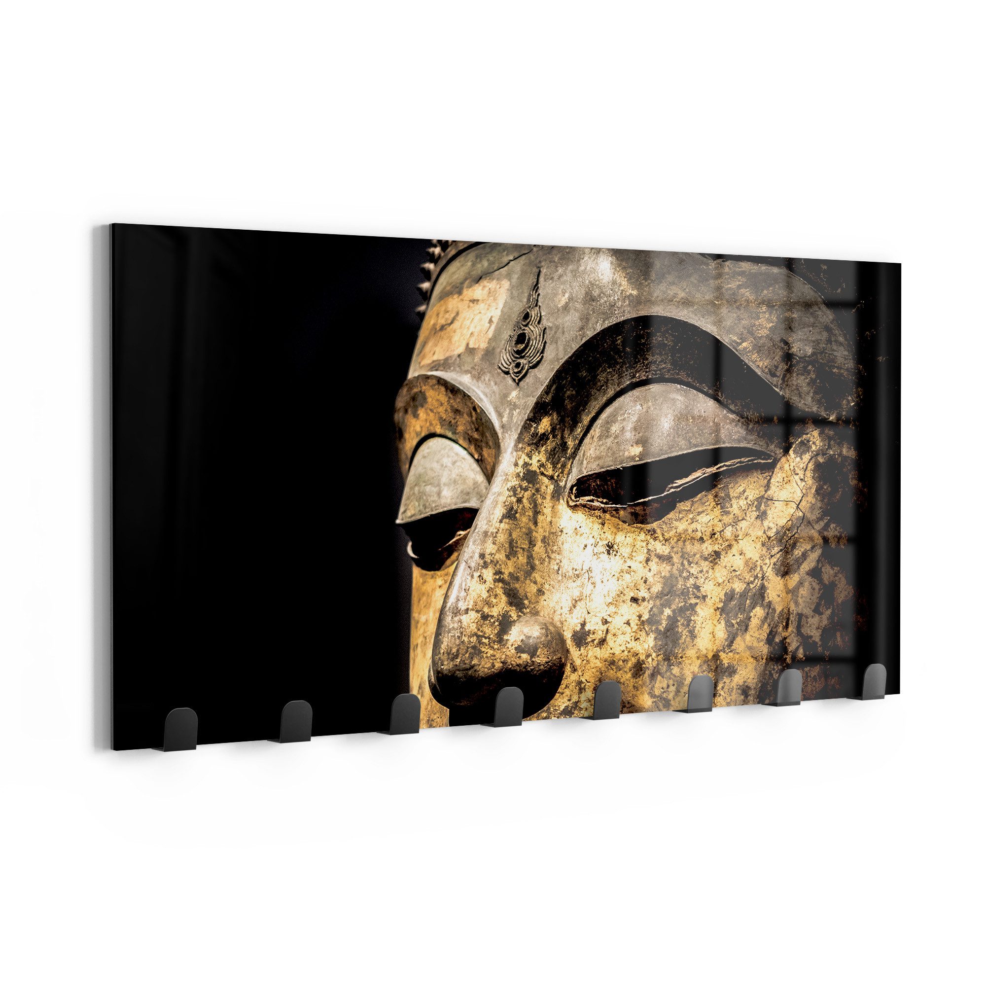Eine ideale Ergänzung für Zuhause ist der 60 x 30 cm große Garderobenhaken mit einem ausgefallenem Design-Motiv. Doch nicht nur als Wandkunst und Jackenhalter überzeugend, sondern dank der magnetischen und beschreibbaren Eigenschaften finden auch Notizen oder Fotos an dem Paneel Platz. Die rückseitigen Ausbuchtungen sorgen dafür, dass die Garderobe aus Glas schnell an der Wand befestigt ist.