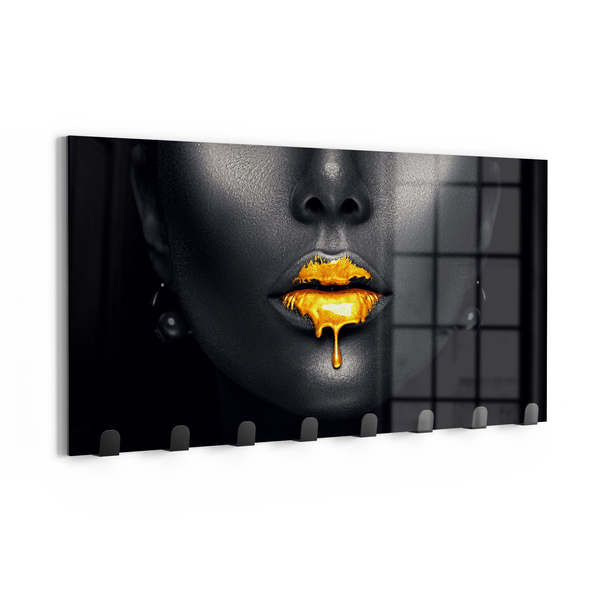 Eine ideale Ergänzung für Zuhause ist der 60 x 30 cm große Garderobenhaken mit einem ausgefallenem Design-Motiv. Doch nicht nur als Wandkunst und Jackenhalter überzeugend, sondern dank der magnetischen und beschreibbaren Eigenschaften finden auch Notizen oder Fotos an dem Paneel Platz. Die rückseitigen Ausbuchtungen sorgen dafür, dass die Garderobe aus Glas schnell an der Wand befestigt ist.