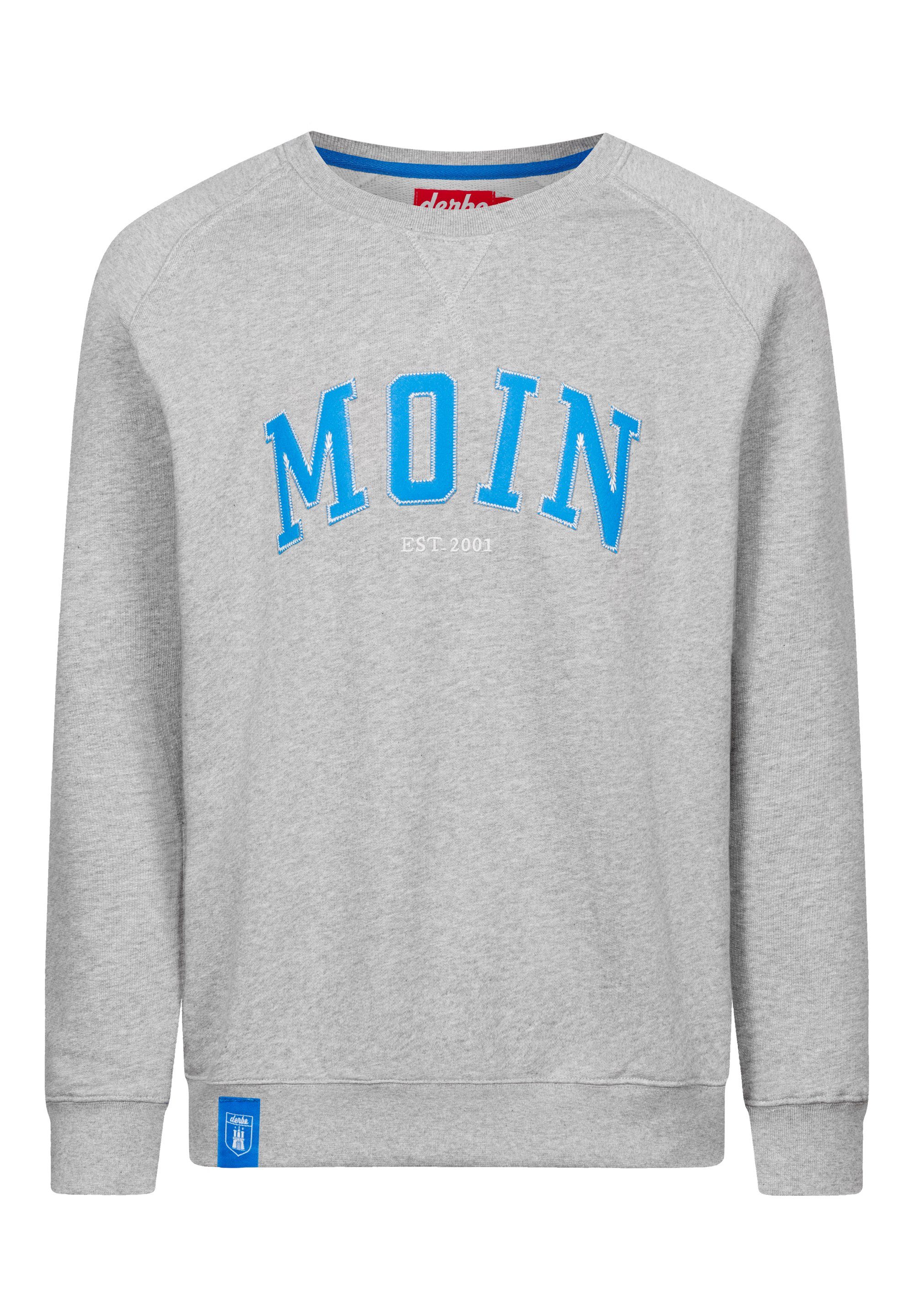 Rundhals Frontprint: mit aufgenähtem Moin-Schriftzug weiche, angeraute Innenseite Ärmelenden und Saum gerippt hergestellt in Europa