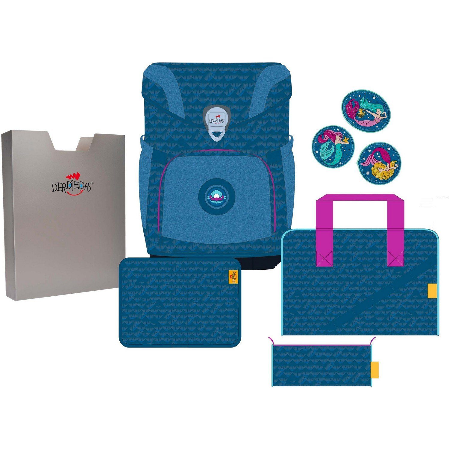 Da der Ergoflex Easy Exklusiv Superflash ein Eigengewicht von ca. 950 Gramm aufweist, eignet sich dieser Schulranzen perfekt für alle Kinder. Trotz seines geringen Gewichts verfügt der Ergoflex Easy Exklusiv Superflash Meerjungfrau mit einem Volumen von ca. 20,5 Liter über mehr als genügend Platz für sämtliche Schulutensilien Ihres Kindes. Im Deckel des Ranzens befinden sich praktische Elastik-Haltebänder die z.B. genug Platz fürs Etui bieten und in den Seitentaschen findet ein Regenschirm oder die Trinkflasche Platz. Damit diese Schultasche auch immer perfekt auf dem Rücken Ihres Kindes passt, lassen sich die Schultergurte sekundenschnell auf die passende Размер einstellen. Neben dem gepolsterten Rückteil sorgen auch die abnehmbaren Hüftgurte, welche das Gewicht von der Schultern auf die Hüften verteilen, für ein ergonomisches Tragen. Auch der flexible Brustgurt lässt sich auf die jeweilige Größe Ihres Kindes einstellen. Dank dem robusten, thermogeformten Boden verliert der Ergoflex Easy Exclusiv Superflash Meerjungfrau nie den Stand und die liebevollen Motivbullaugen machen diesen Schulranzen zu einem echten Hingucker. Außerdem lässt sich das Magnetschloss von SUDHAUS in kindgerechtem Design, kinderleicht mit einer Hand bedienen und schließt automatisch beim Zuklappen des Deckels und die reflektierenden Flächen vorne und an deen Seiten erhöhen die Sichtbarkeit Ihres Kindes in Straßenverkehr. Die retroreflektierenden Fläschen an Front, Deckel und den Seiten, erhöhen die Sichtbarkeit Ihres Kindes in Straßenverkehr. Bei den Superflash Modellen, handelt es sich um eine Limited Edition.