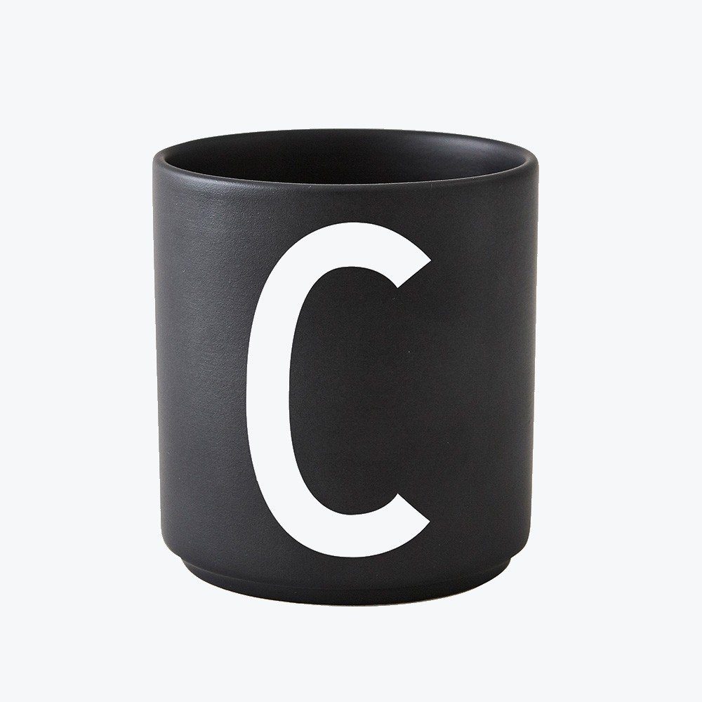 Die schnörkellose und geradlinige Typographie, die Arne Jacobsen 1937 entwarf, ist noch heute ein modernes und dekoratives Dekor für die Porzellanbecher der Firma Design Letters. Der schwarze Becher aus Fine Bone China mit dem großen Buchstaben C ist nicht nur in der Küche ein edler Blickfang, sondern eignet sich auch auf dem Schreibtisch zum Halten von Stiften oder im Badezimmer als Ablage für kleine Alltagsgegenstände. Der Becher ist neun Zentimeter hoch und hat einen Durchmesser von 8 cm. Er hat ein Fassungsvermögen von 325 ml und ist für die Reinigung in der Spülmaschine geeignet.