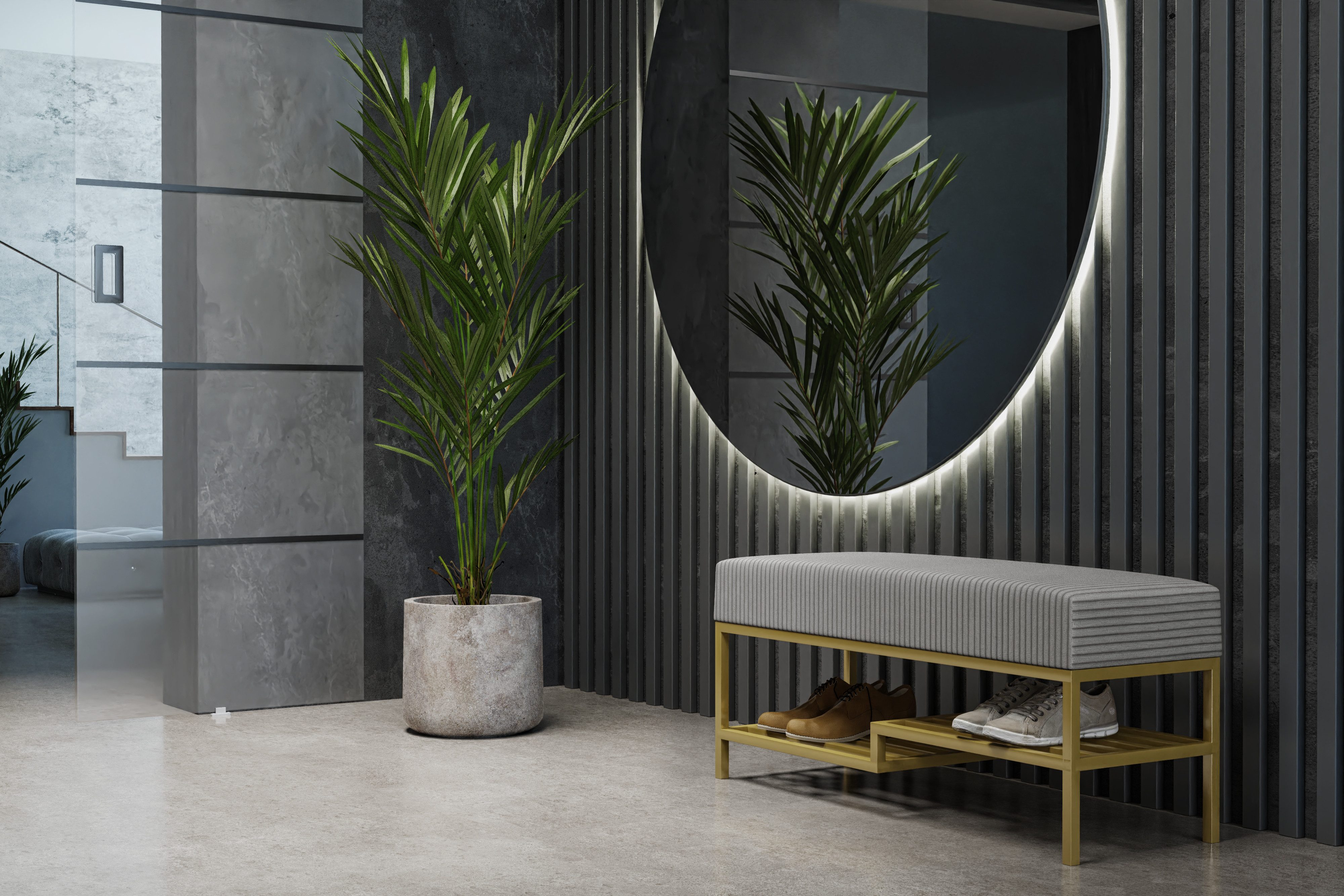 Verleihen Sie Ihrem Zuhause einen Hauch von Eleganz und Funktionalität mit unserer Sitzbank im LOFT DESIGN. Diese moderne, gepolsterte Bank überzeugt durch ihr minimalistisches und industrielles Design, das sich nahtlos in verschiedene Wohnstile einfügt, von skandinavisch bis industrial. Die gepolsterte Sitzfläche, gefertigt aus hochwertigem T30-Schaumstoff und bezogen mit einem strapazierfähigen, leicht zu reinigenden Stoff, bietet höchsten Sitzkomfort. Das stabile Gestell besteht aus pulverbeschichtetem Stahl in einem eleganten Vierkantprofil (20 mm) und ist in vier Farbvarianten erhältlich. Zusätzlich verfügt die Bank über eine praktische Ablage, die ideal für Schuhe oder andere Gegenstände ist, was sie besonders funktional im Flur oder Eingangsbereich macht. Perfekt für alle, die modernes Design mit hoher Funktionalität kombinieren möchten.