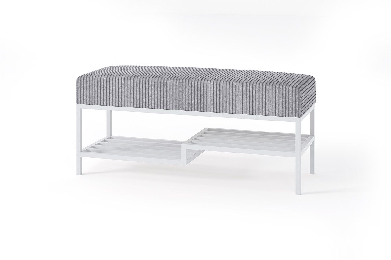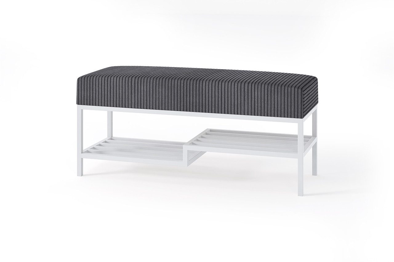 Verleihen Sie Ihrem Zuhause einen Hauch von Eleganz und Funktionalität mit unserer Sitzbank im LOFT DESIGN. Diese moderne, gepolsterte Bank überzeugt durch ihr minimalistisches und industrielles Design, das sich nahtlos in verschiedene Wohnstile einfügt, von skandinavisch bis industrial. Die gepolsterte Sitzfläche, gefertigt aus hochwertigem T30-Schaumstoff und bezogen mit einem strapazierfähigen, leicht zu reinigenden Stoff, bietet höchsten Sitzkomfort. Das stabile Gestell besteht aus pulverbeschichtetem Stahl in einem eleganten Vierkantprofil (20 mm) und ist in vier Farbvarianten erhältlich. Zusätzlich verfügt die Bank über eine praktische Ablage, die ideal für Schuhe oder andere Gegenstände ist, was sie besonders funktional im Flur oder Eingangsbereich macht. Perfekt für alle, die modernes Design mit hoher Funktionalität kombinieren möchten.