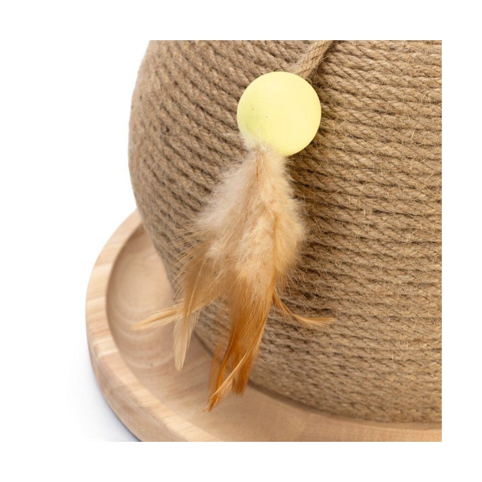 Was macht mehr Spaß als Kratzen und Spielen gleichzeitig? Das ist mit dem Designed by Lotte Kratz- und Spielball Mila aus Rubberwood kein Problem. Dieser Ball besteht aus einem runden Boden mit einer Rille. In dieser Rille befinden sich Spielbälle. Sobald die Katze mit ihren Pfoten oder mit ihrer Nase die Bälle berührt, rotieren die Bälle in der Rille. Ist der Stubentiger schnell genug, um die Bälle zu fangen? Der Kratzball über der Spielfläche ist mit Jute-Seil umwickelt. An diesem kann die Katze ihre Krallen optimal wetzen. Die zusätzliche Feder auf dem Kratzball bringt zusätzlichen Spaß!