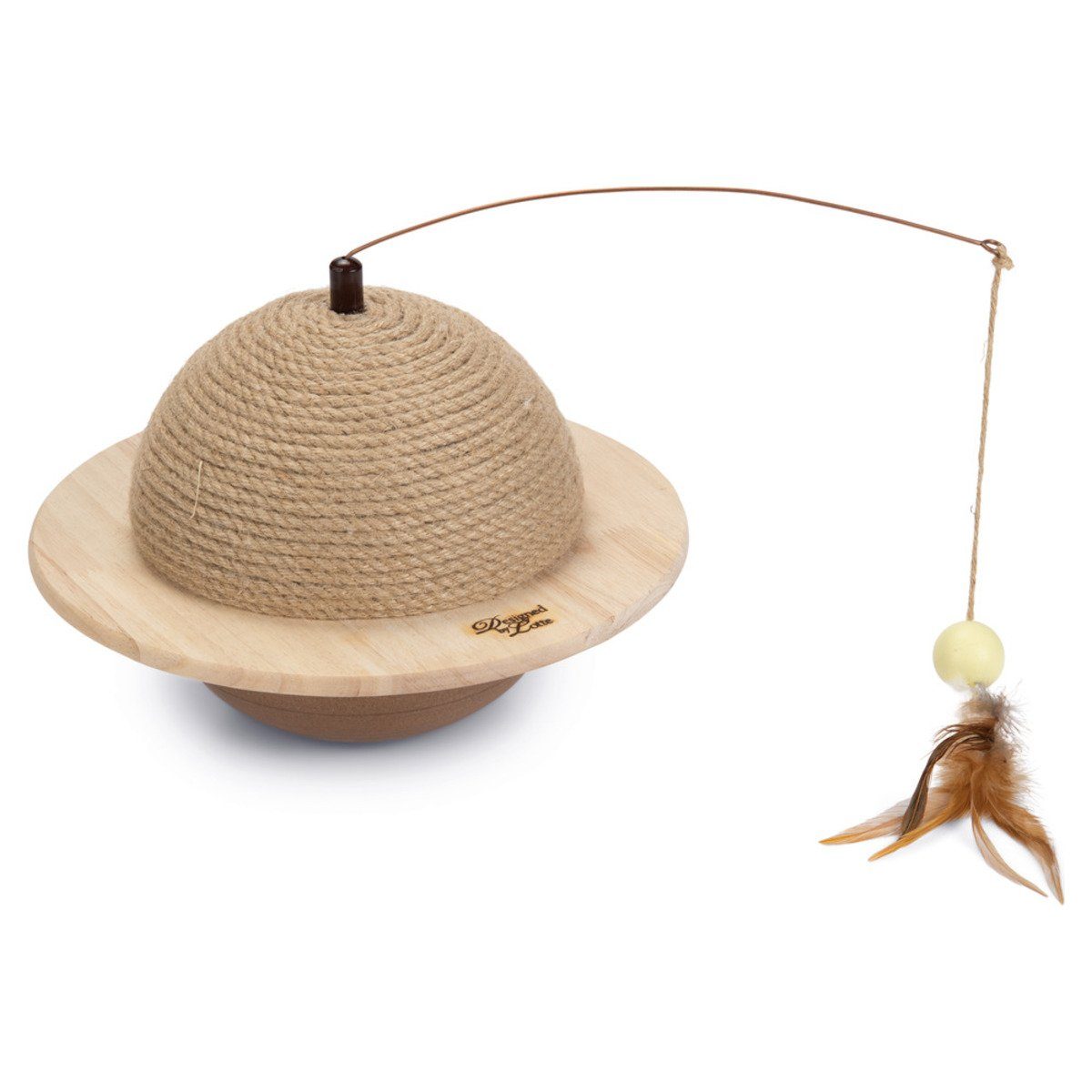 Der Designed by Lotte Holz-Kratzball Wiggly ist ein echtes Designelement für das Zuhause von Katzenbesitzern und bietet Stubentigern viel Kratzvergnügen und zugleich Spielspaß. Wiggly besteht aus Rubberwood, das einen schönen hellen Farbton hat. Der Ball ist mit robustem Juteseil umwickelt. Ganz oben ist ein Spielelement mit einer Kugel und Federn angebracht. Sobald sich die Katze auf die Jagd nach den Federn macht oder beginnt am Ball zu kratzen, wackelt der Ball hin und her. Das animiert die Katze zu weiteren Aktionen und sorgt für eine lustige Unterhaltung. Und weil der Ball in der Wohnung einfach fantastisch aussieht, machen Katzenbesitzer mit diesem Kratzball nicht nur ihrem Vierbeiner eine Freude, sondern auch sich selbst ebenso!