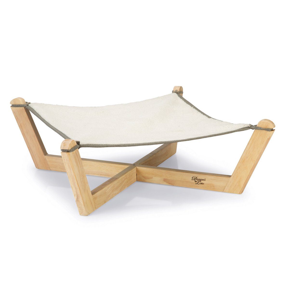 Die Designed by Lotte Hängematte Gaia ist ein besonderer Liegeplatz für Katzen. In einem Holzgestell ist eine Hängematte aus Textil eingespannt. Auf diesem erhöhten Plätzchen kann die Katze gemütlich dösen oder entspannt die Umwelt beobachten.