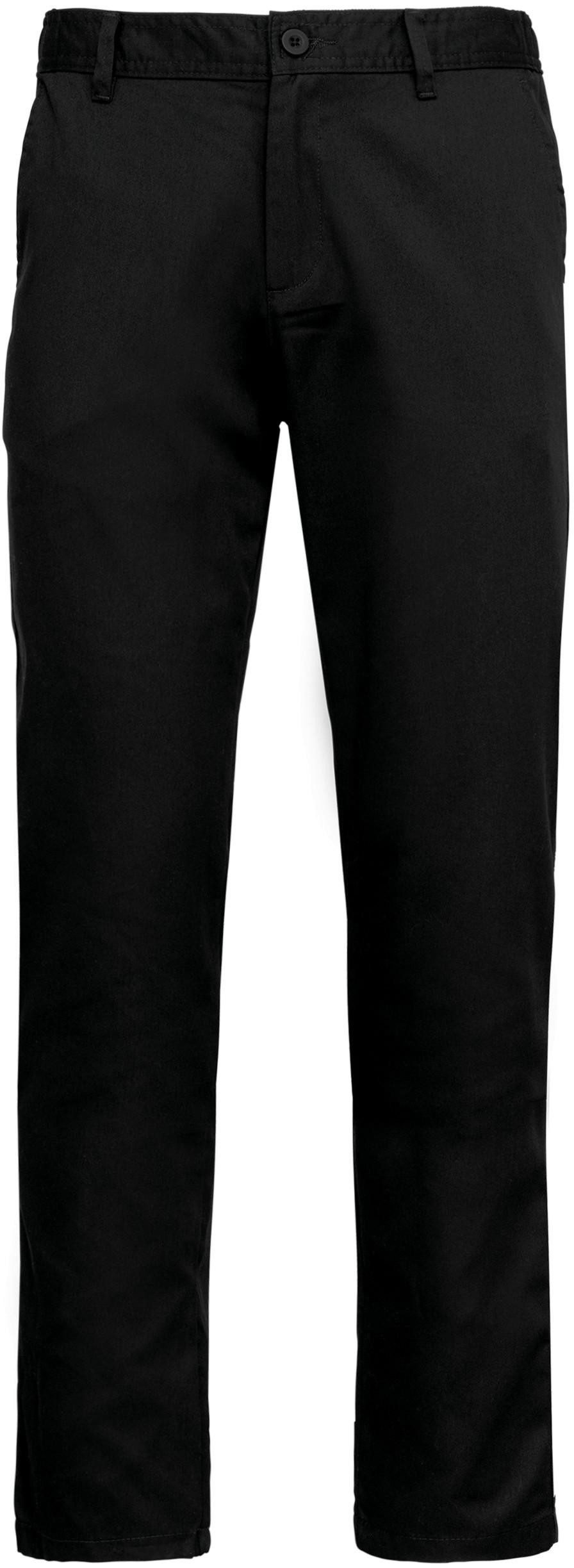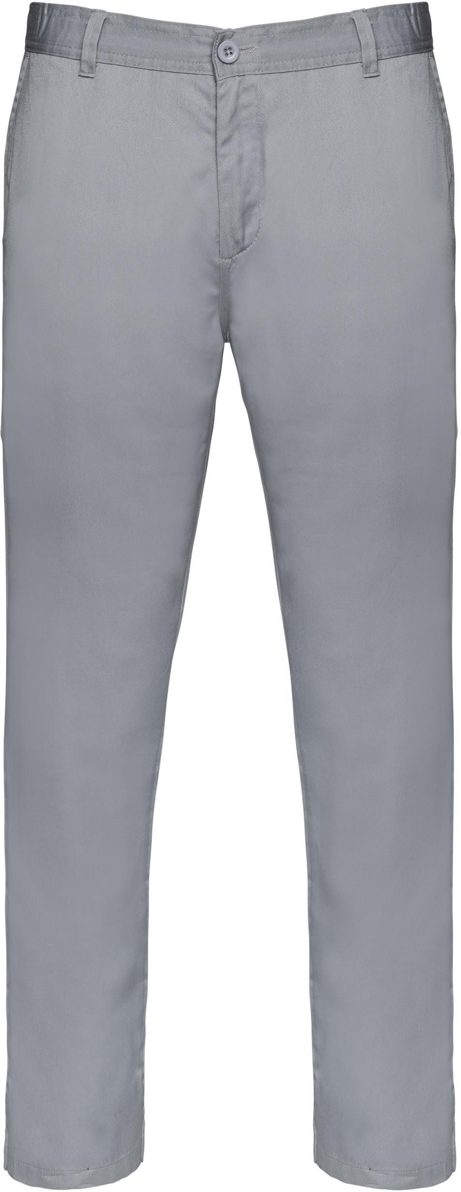 65 % Polyester / 35 % Baumwolle. Waschbar bei 60 °C. 2 seitliche schräge Taschen, davon eine Tickettasche. 2 Gesäßtaschen mit Paspel und verstärkten Nähten. Reißverschluss und Knopf. Elastikbund für mehr Komfort sowie Gürtelschlaufen. Befestigungshaken auf der Bundinnenseite hinten. Ideal für eine tägliche Nutzung.