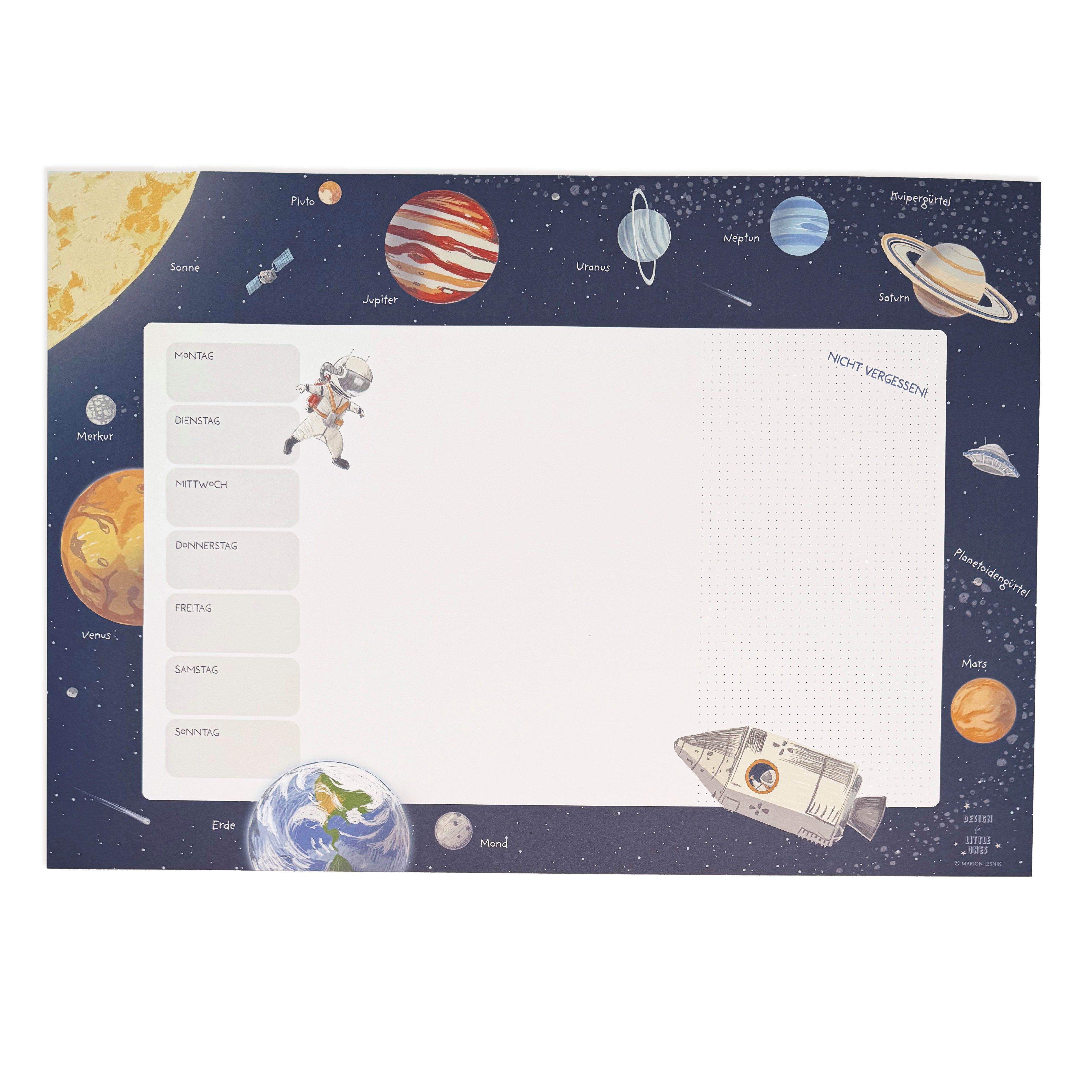 • Praktisch und vielseitig: Ideal als Wochenplaner, Malunterlage oder für kreative Weltraumzeichnungen.