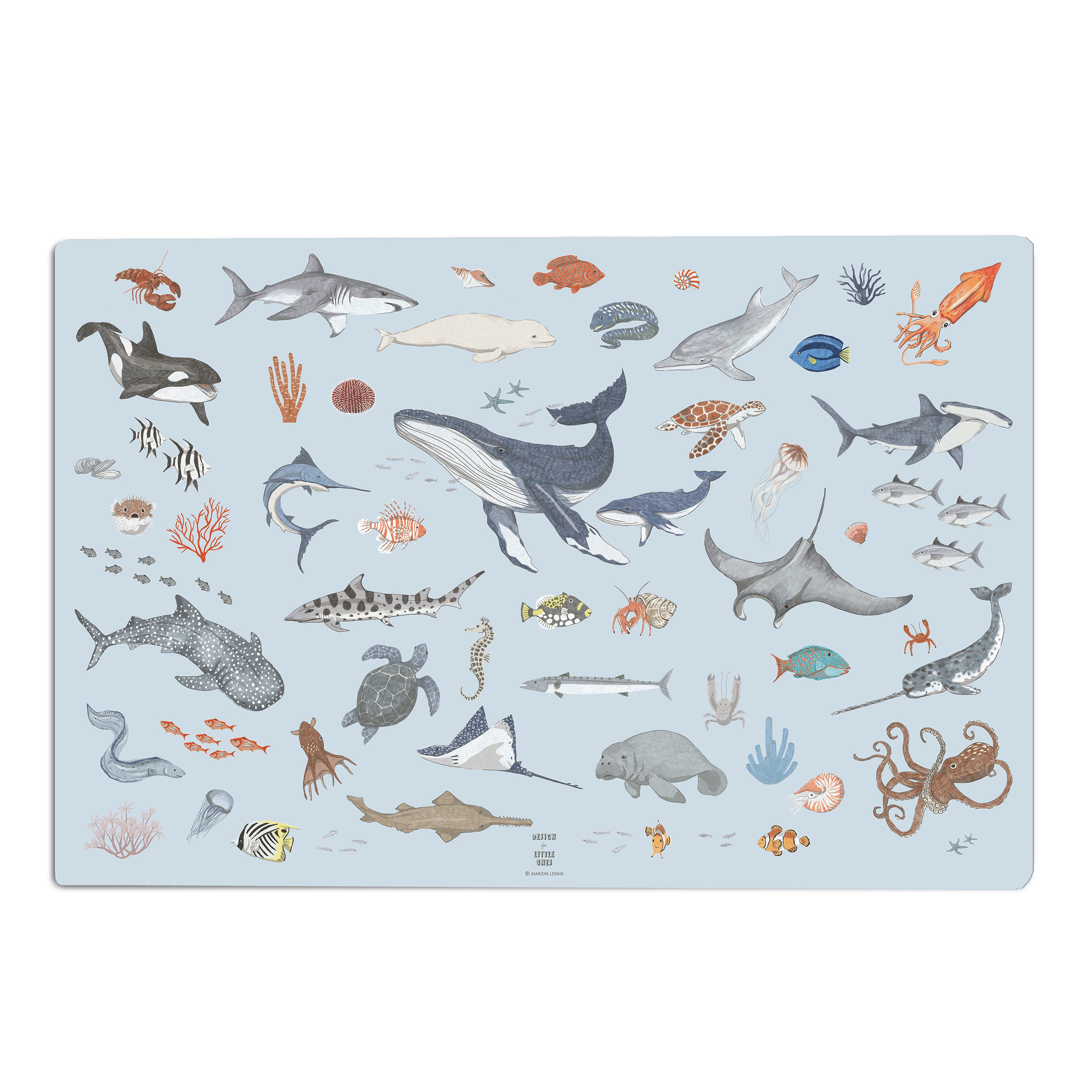 Designforlittleones Schreibtischunterlage Meerestiere, Ocean Animals