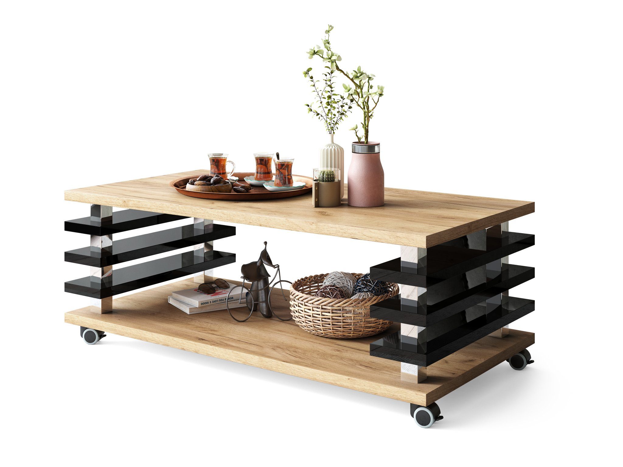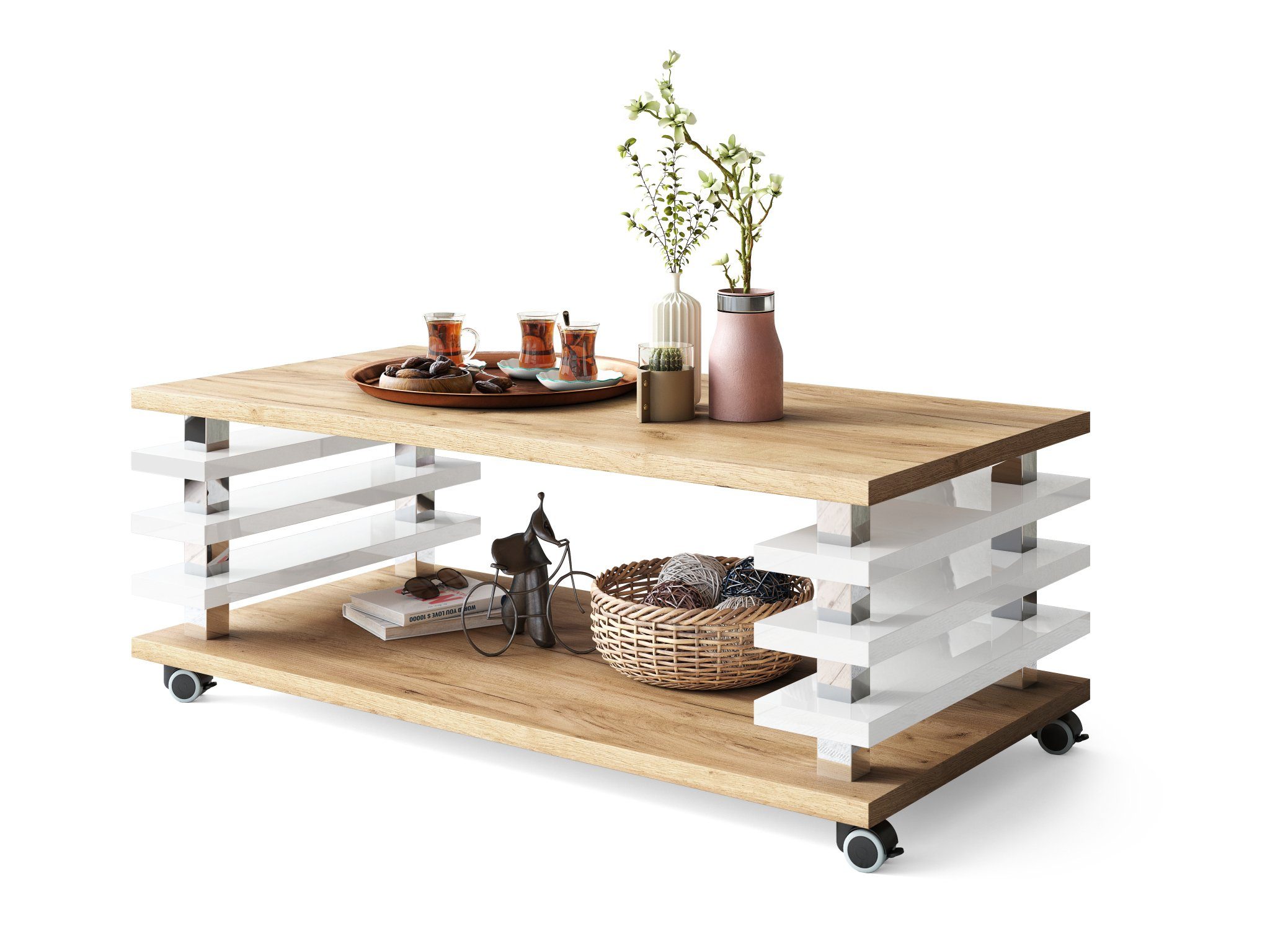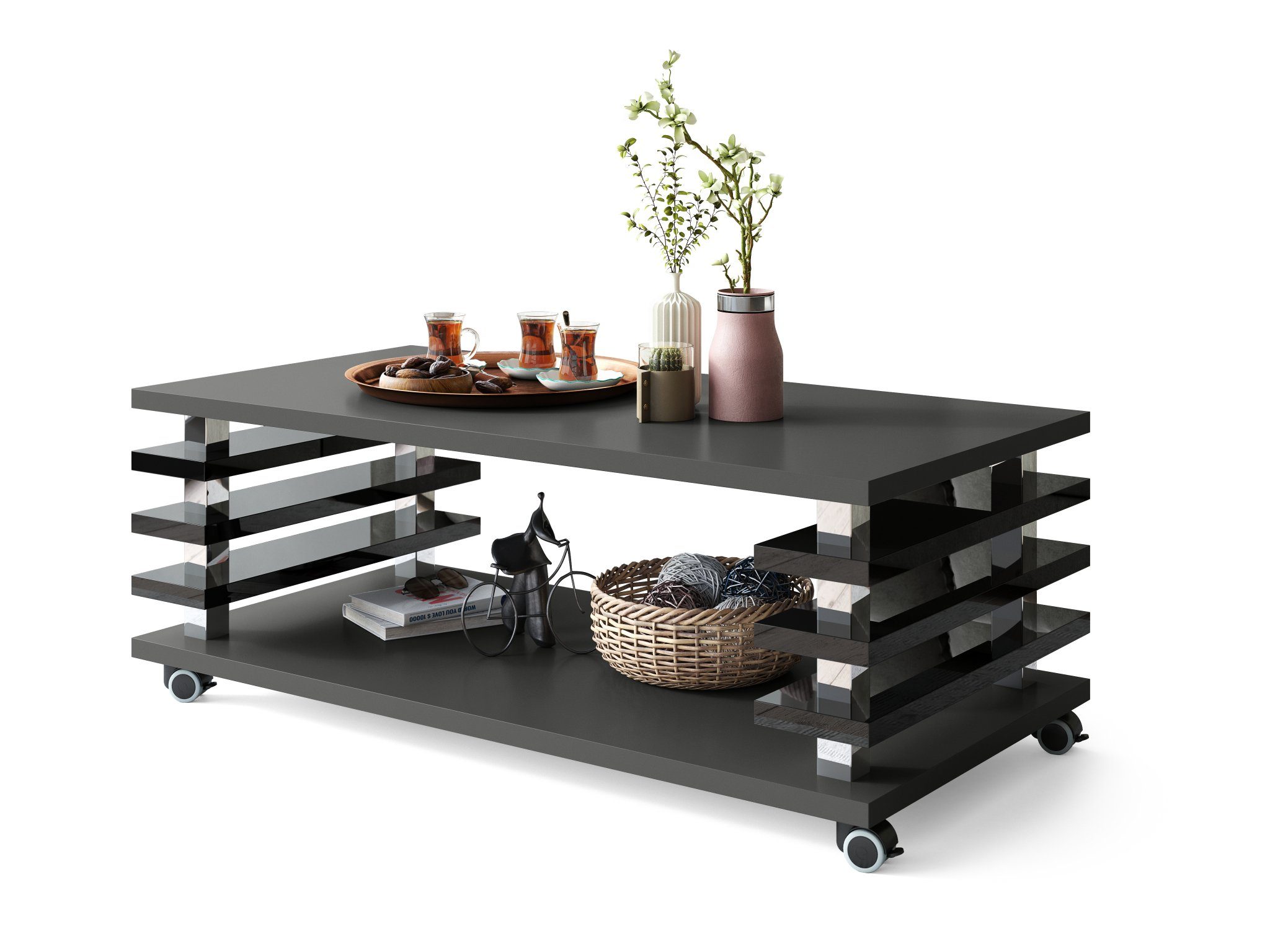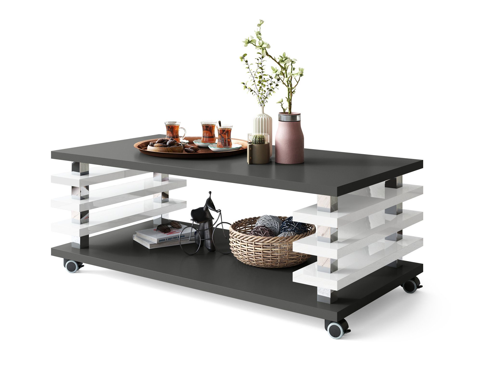 Dieser Design Carl Svensson Couchtisch ist ein absoluter Eyecatcher, welcher Ihren Räumlichkeiten neuen Flair verleiht. Sie lassen sich ideal mit bereits bestehenden Möbeln kombinieren und sind zudem äußerst stilvoll und zeitlos zugleich. Mit den hochwertigen Rollen lässt sich der Tisch mühelos verschieben (mit 4 Feststellbremsen / parkettgeeignet). Unsere verschiedenen Farb- und Modellvarianten bieten für jeden Geschmack das Richtige. Das schlichte Design unserer Couchtische lässt sich hervorragend in bestehende Einrichtungen integrieren.