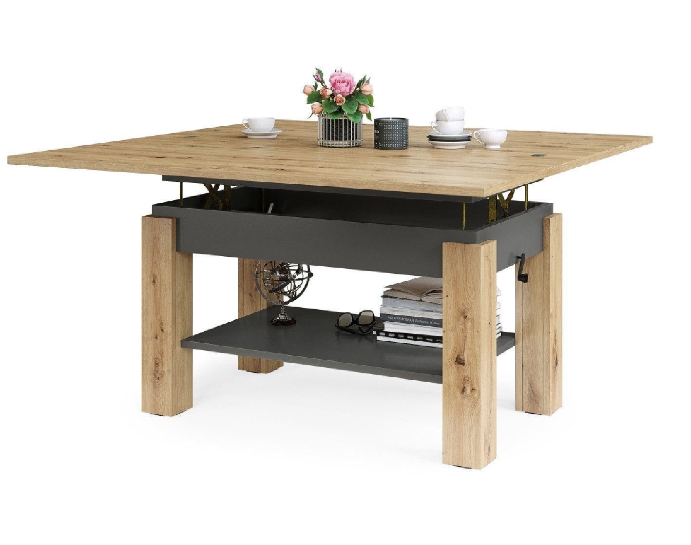 Praktischer Couchtisch Brawo stufenlos höhenverstellbar und in der Tiefe aufklappbar zu einem quadratischen Esstisch 130 x 130cm