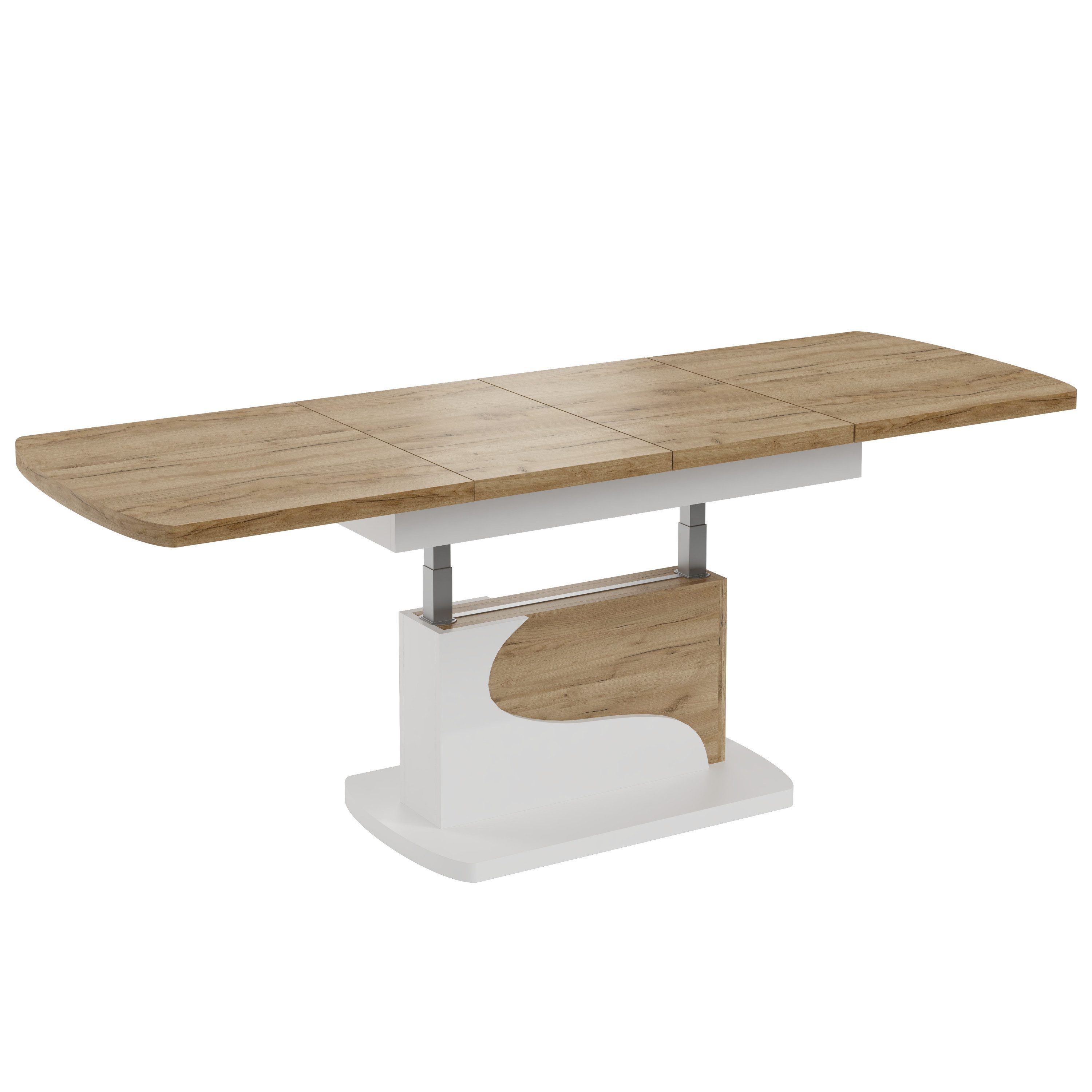 Ein wunderschöner, stabiler und sehr praktischer Funktionscouchtisch, der problemlos zu einem stabilen Esstisch umfunktioniert werden kann. Dieser moderne Tisch lässt sich in der Длина bis zu 200 cm ausziehen und zudem noch in der Höhe von 58 - 77 cm stufenlos verstellen. Durch einen hochwertigen Hebemechanismus (Gasdruck), wird der Tisch auf die gewünschte Höhen eingestellt.