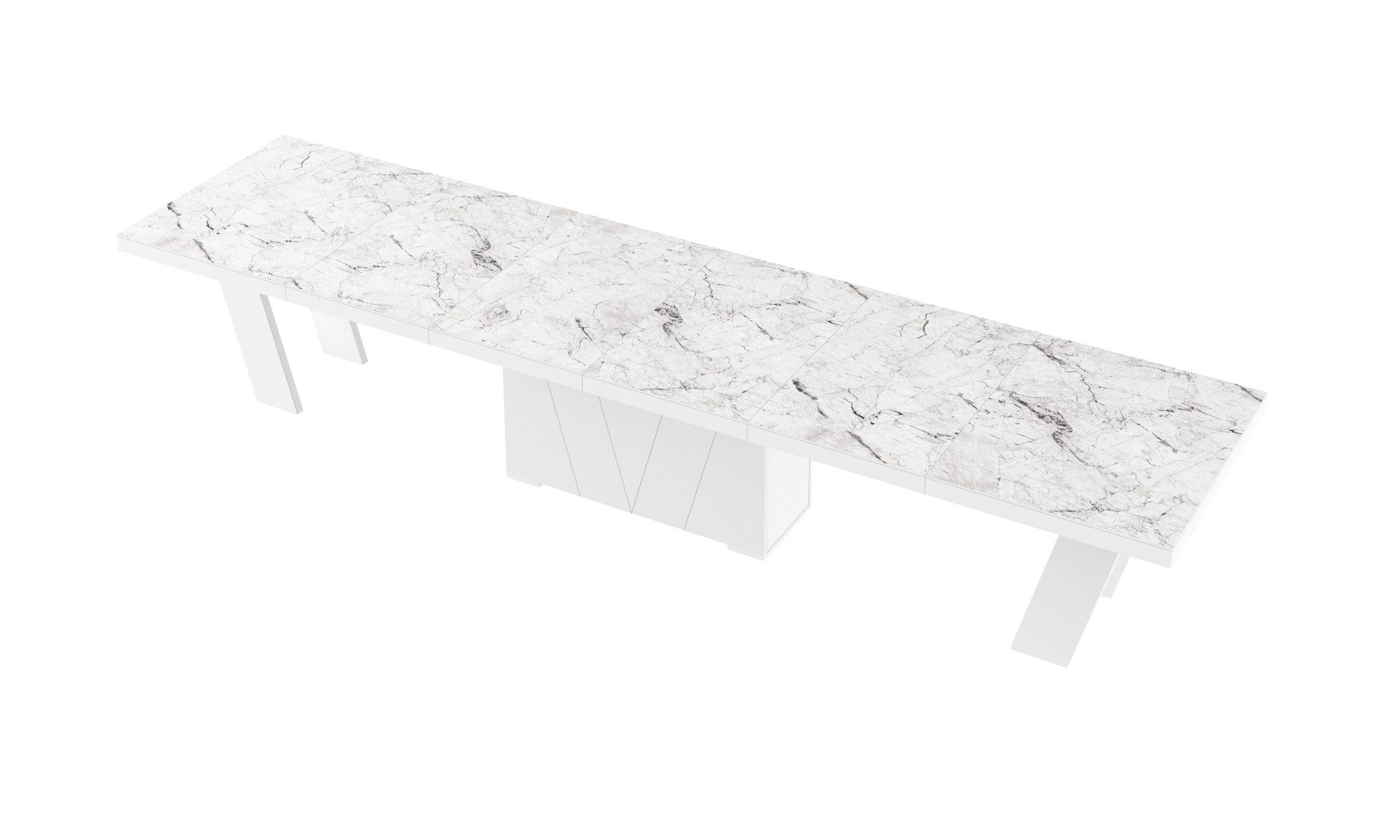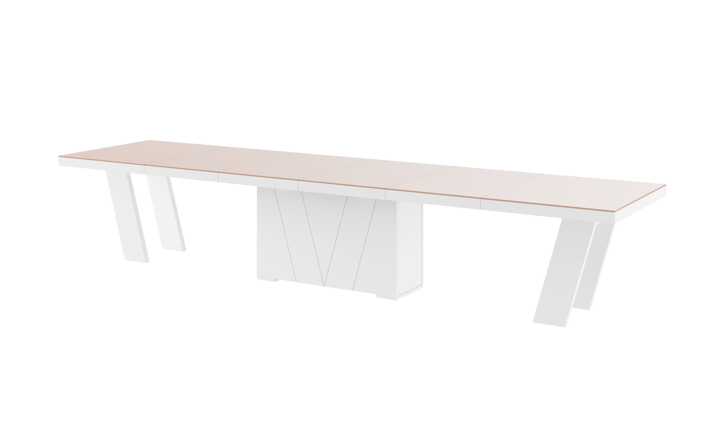 (6 Verlängerungsplatten á 63 cm werden bequem und nicht sichtbar im Tisch verstaut)