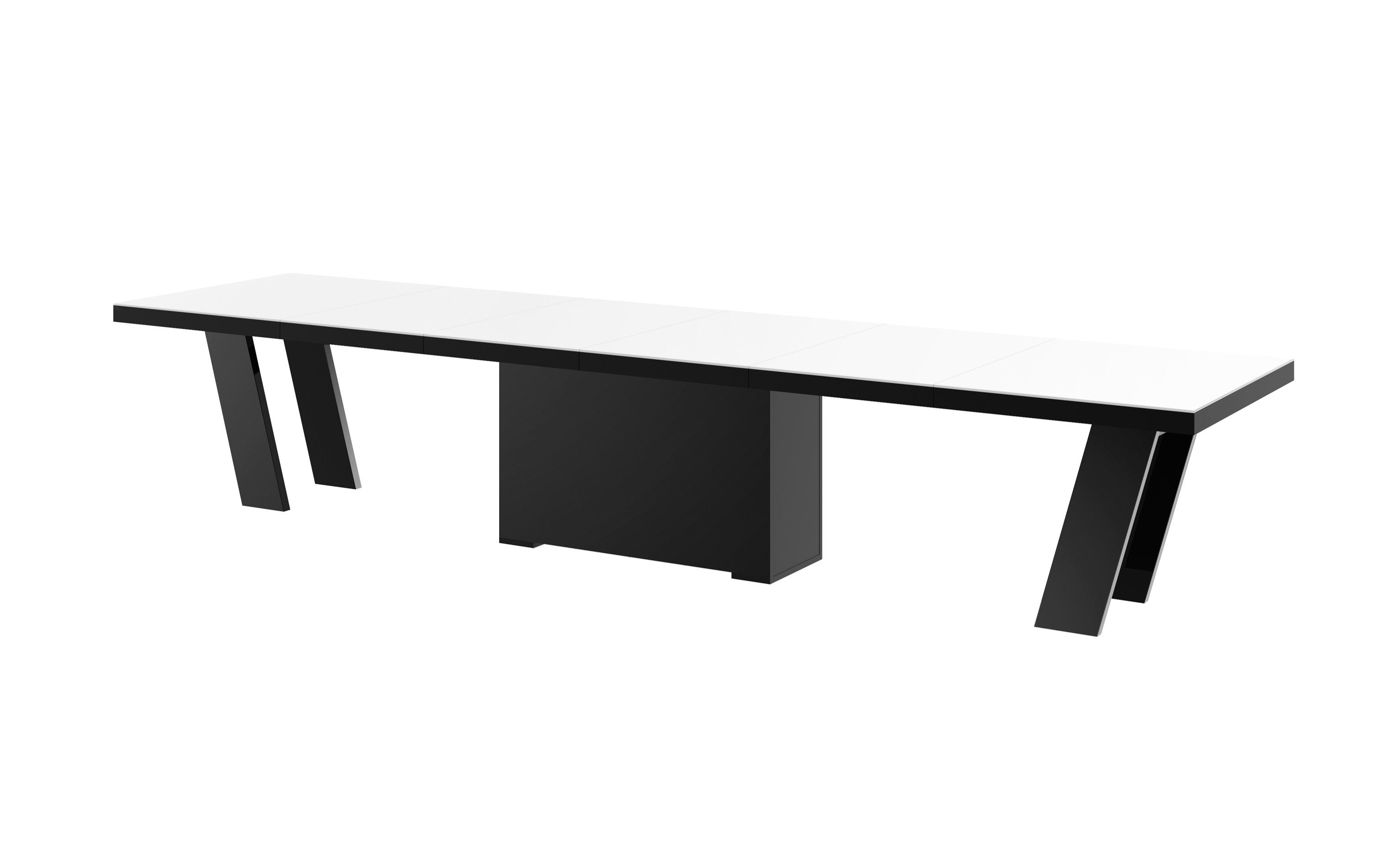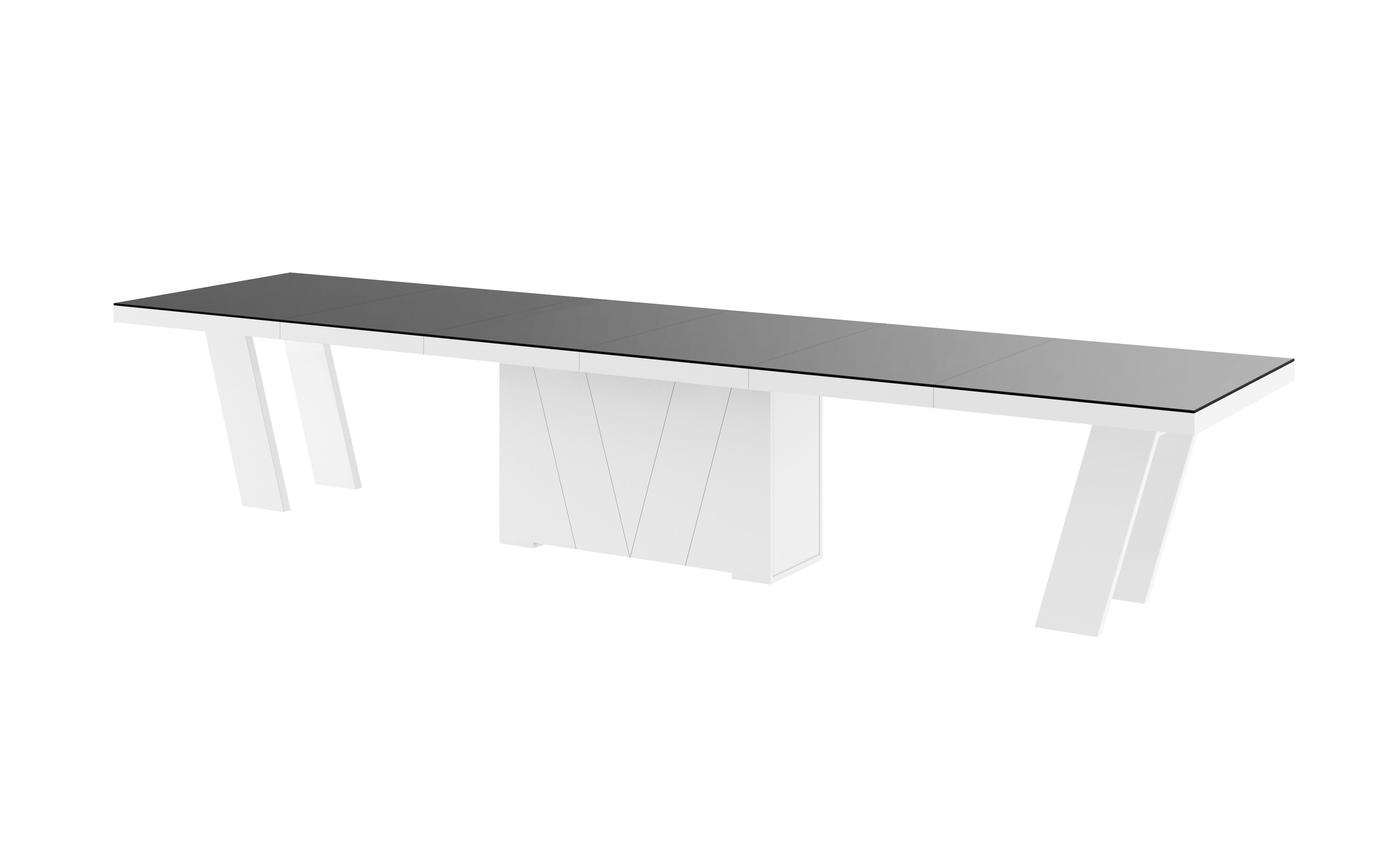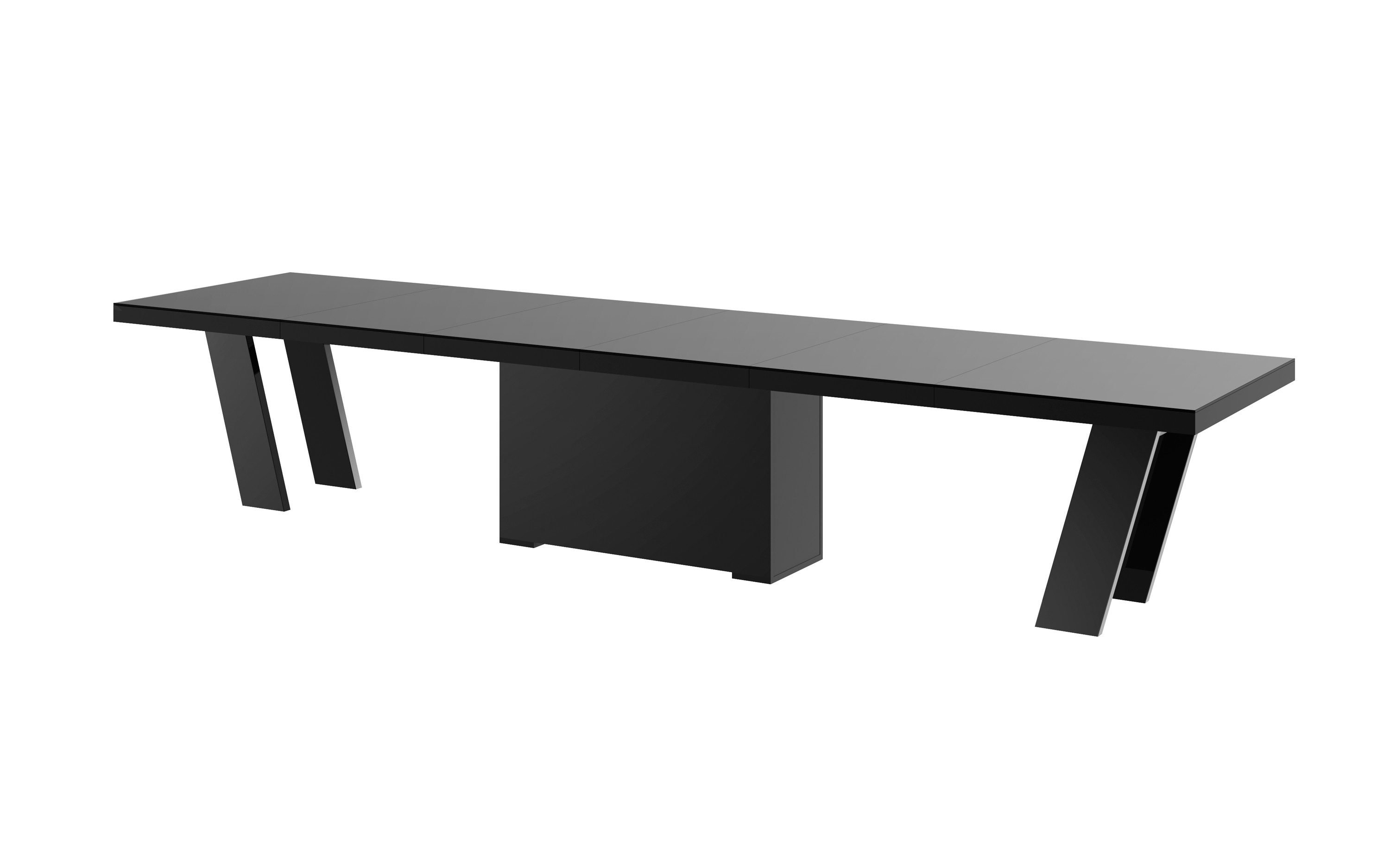 Ein wunderschöner und sehr praktischer Esstisch, der sich mehrfach in der Длина ausziehen lässt. Um die Длина des Tisches zu vergrößern, werden die beiden Oberplatten auseinandergezogen (durch das Ziehen nur einer Platte bewegt sich automatisch die andere - "Synchronauszug") und die Verlängerungselemente (sind im Tisch verstaut) werden aus der Mitte nach oben genommen. Dieser Funktionstisch ist sowohl von seiner Erscheinung, als auch von seiner Funktionalität etwas besonderes. Durch seine Geradlinigkeit entsteht ein stilvolles und zeitloses Design, wodurch in Ihren Räumlichkeiten neue Akzente gesetzt werden. Die Oberfläche des Tisches ist extrem hochglänzend und wird daher mit einer Schutzfolie beschiechtet geliefert, welche erst nach dem Aufbau abgezogen werden sollte.