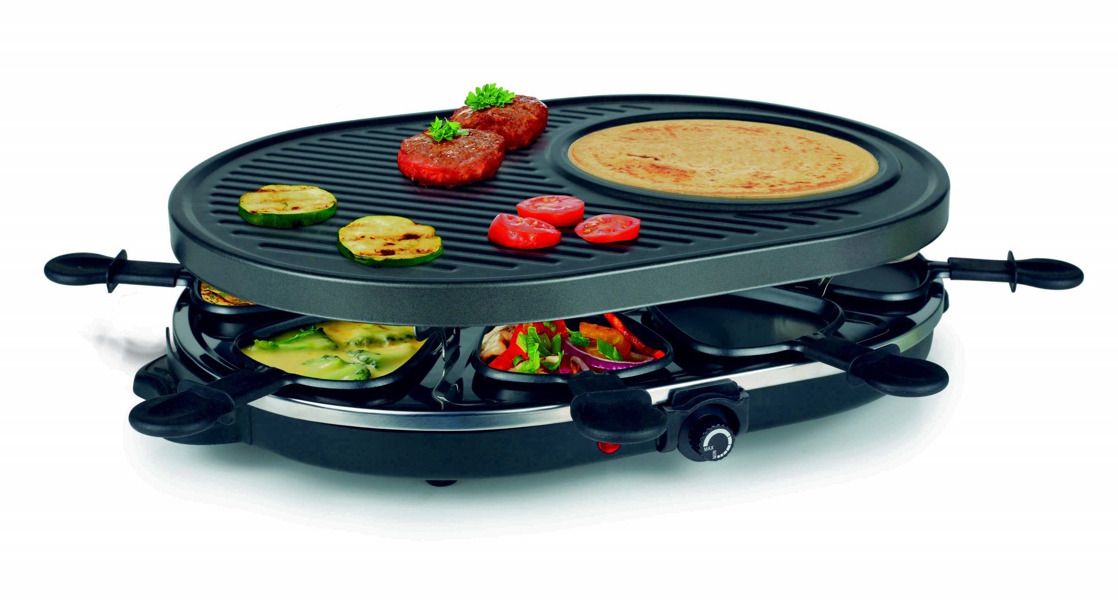 Mit diesem Raclette-Set bereiten Sie nicht nur eine Vielfalt von Fleisch, Fisch oder Gemüsespezialitäten zu, sondern dank dem integriertem Crapemaker auch leckere hauchdünne Pfannekuchen zum belegen.