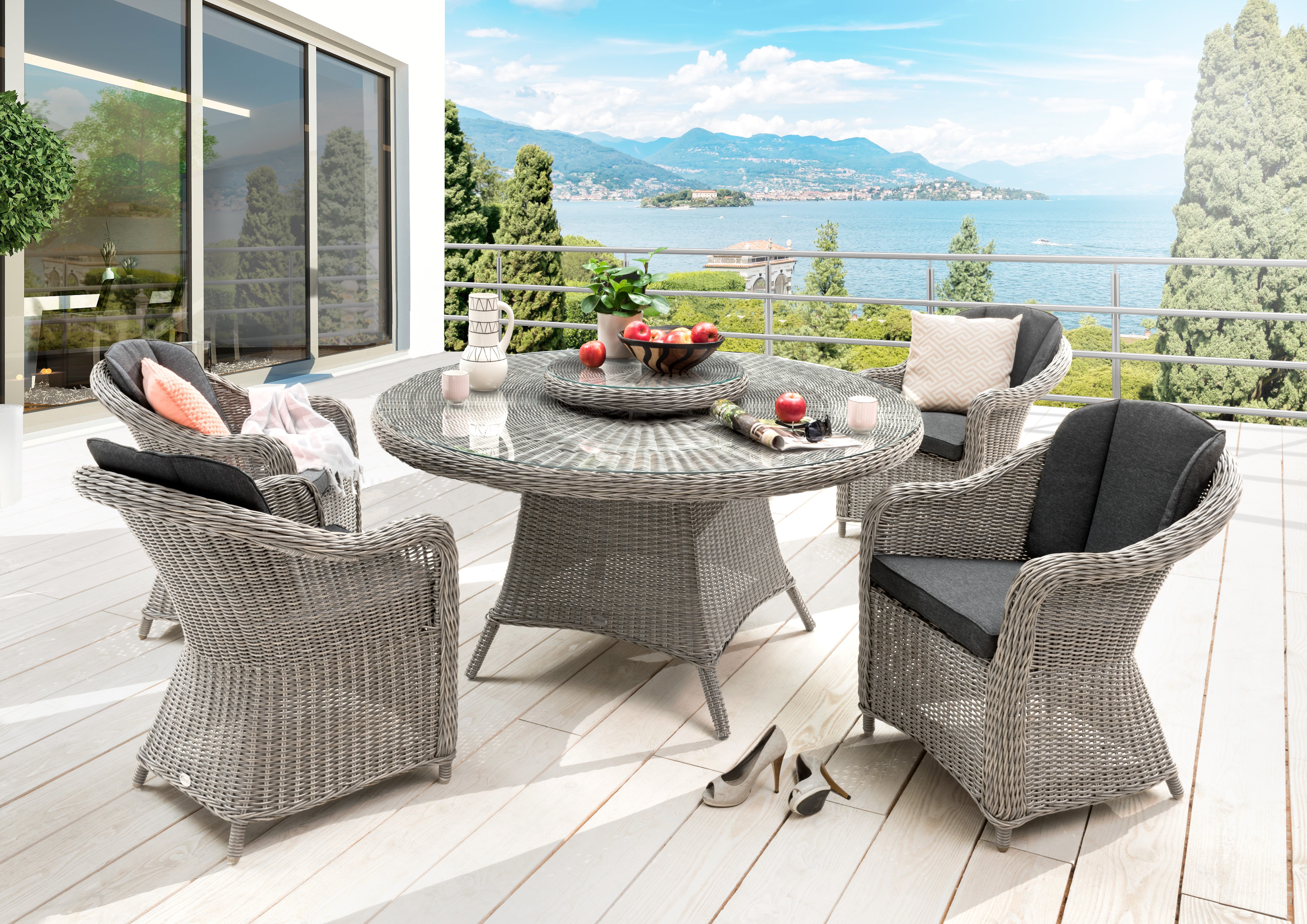 Lieferumfang | 1 Drehteller 1 Tisch 4 Sessel inkl. Polster |