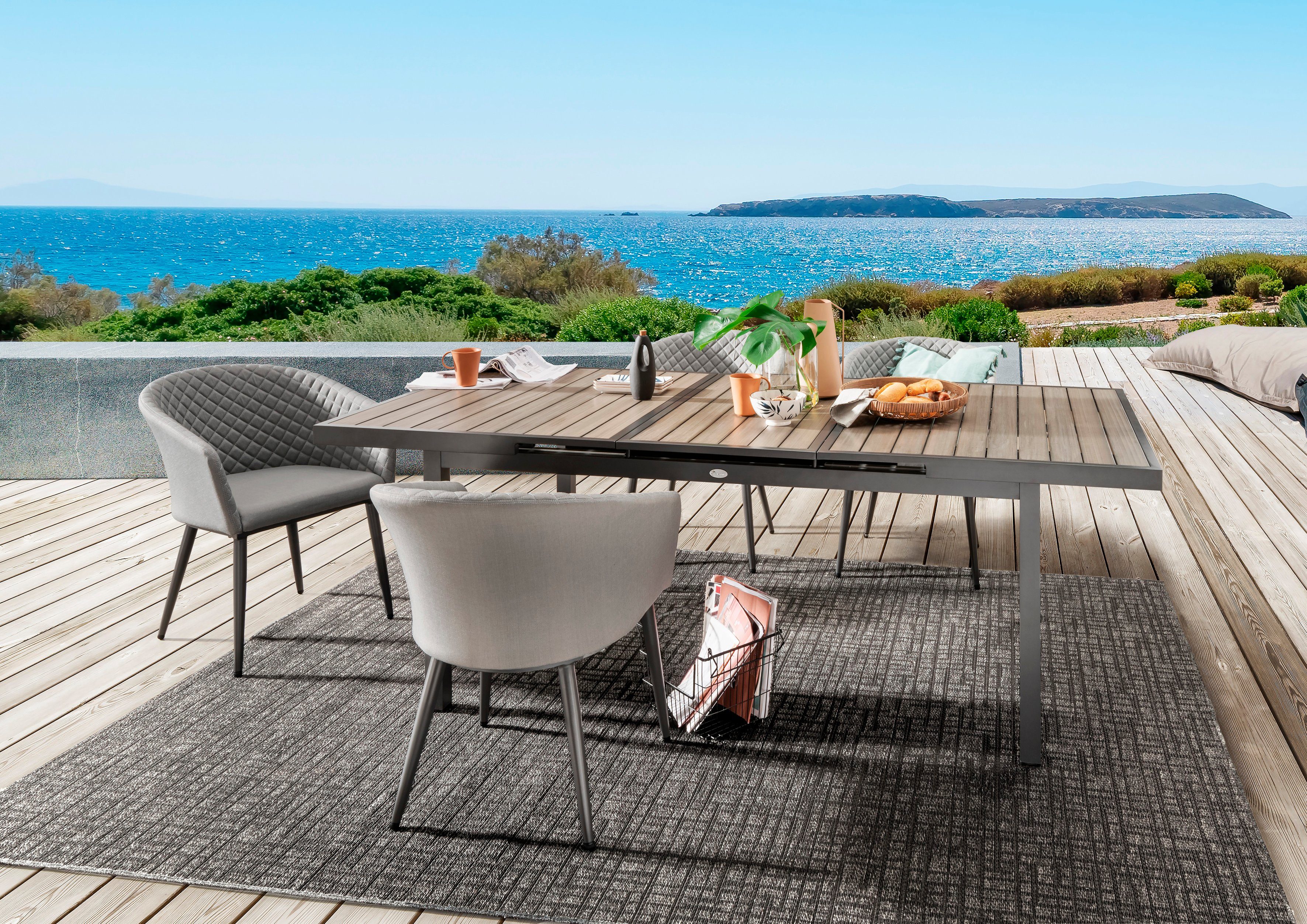Materialhinweis | Die Möbel sind für den Außenbereich bestimmt,sollten jedoch für die Langlebigkeit nicht dauerhaft dem Regen ausgesetzt sein (trocken unterstellen). |