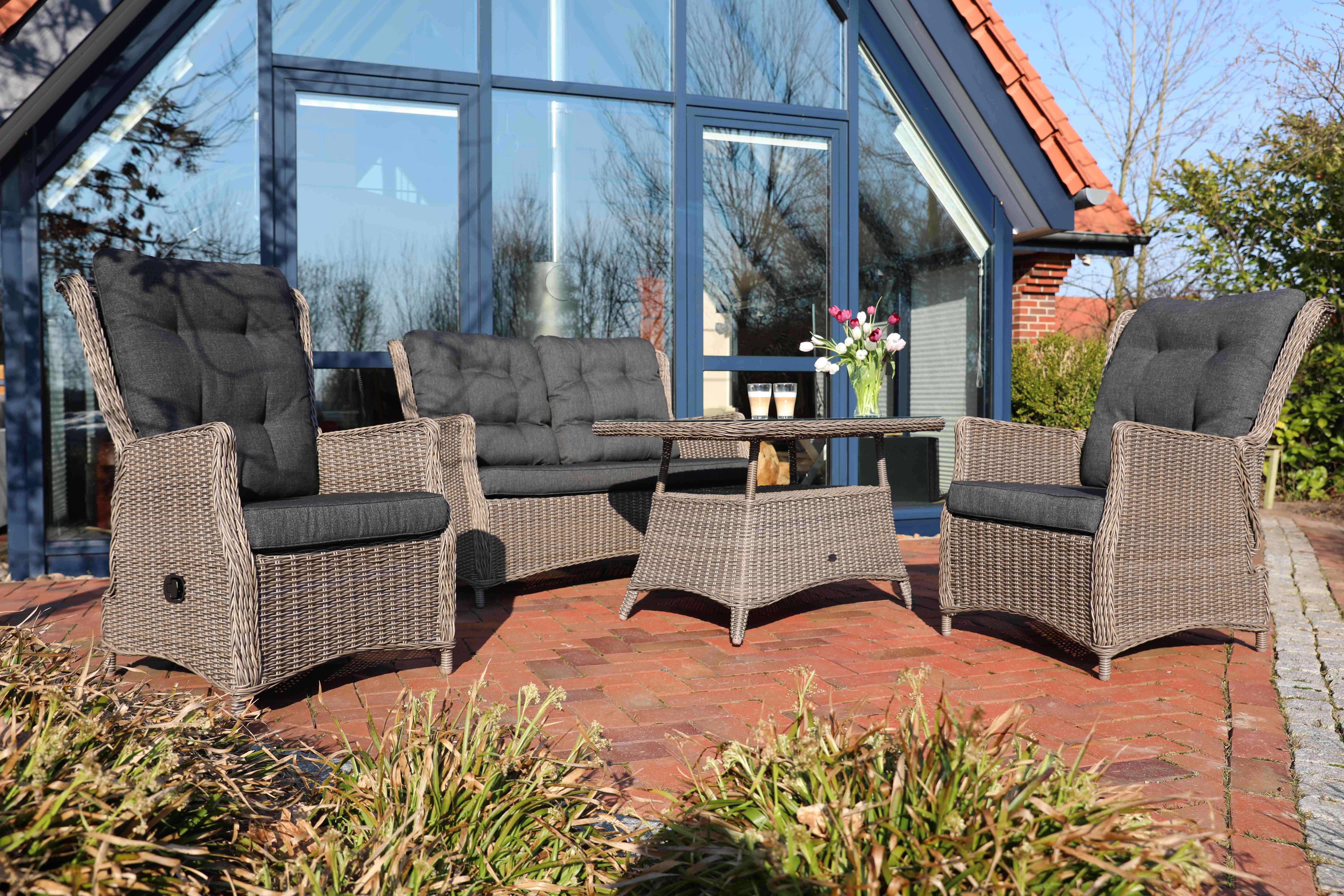 Set beinhaltet | 2x Sessel, 1x Sofa, 1x Tisch, Polstersatz |