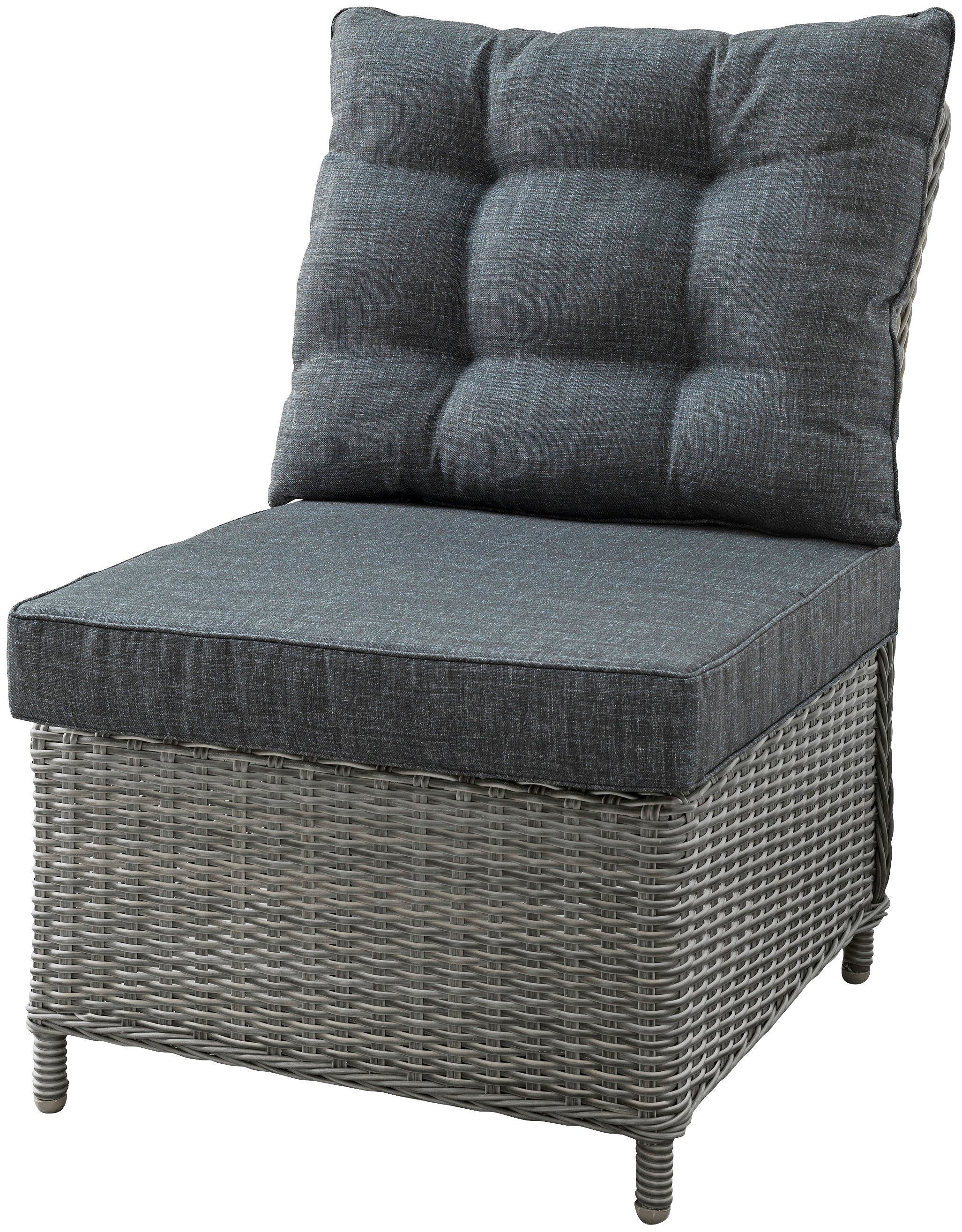 Dieser Loungesessel »PALMA« von Destiny ist mit einem Rückenkissen ausgestattet, das perfekt zum Sessel passt und das Sitzen noch komfortabler macht. Bei etwa 110 Kilogramm liegt die maximale Belastbarkeit. Das Rundrohrgestell aus Kunststoff punktet mit der Temperaturbeständigkeit und sind zudem formstabil. Eine Montage ist nicht notwendig, sodass er sofort einsatzbereit ist.