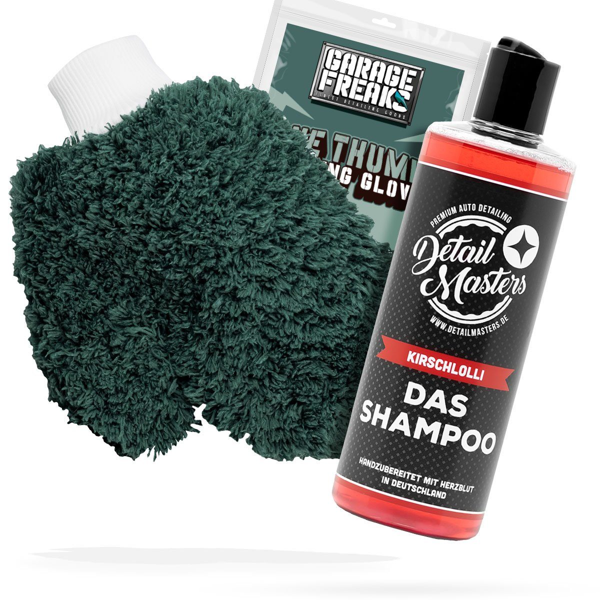 Lieferumfang | 1x Autoshampoo 1x Garage Freaks One Thumb Waschhandschuh |