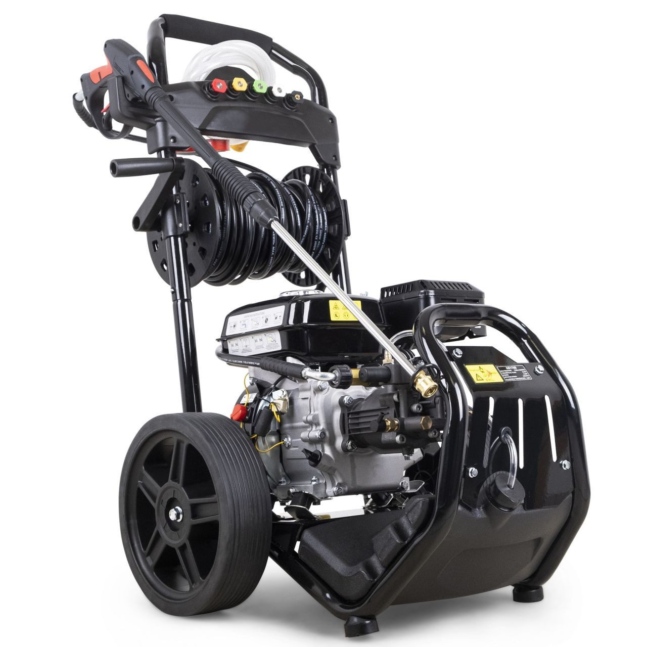 Lieferumfang | Hochdruckreiniger Sprühpistole Sprühpistolenhalterung 5 Düsen Schlauchrolle zzgl. Hochdruckschlauch Bedienungsanleitung |