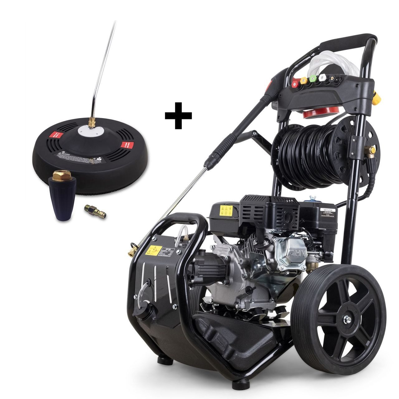 Lieferumfang | Hochdruckreiniger Dreckfräse Flächenreiniger Sprühpistole Sprühpistolenhalterung 5 Düsen Schlauchrolle Hochdruckschlauch Bedienungsanleitung |