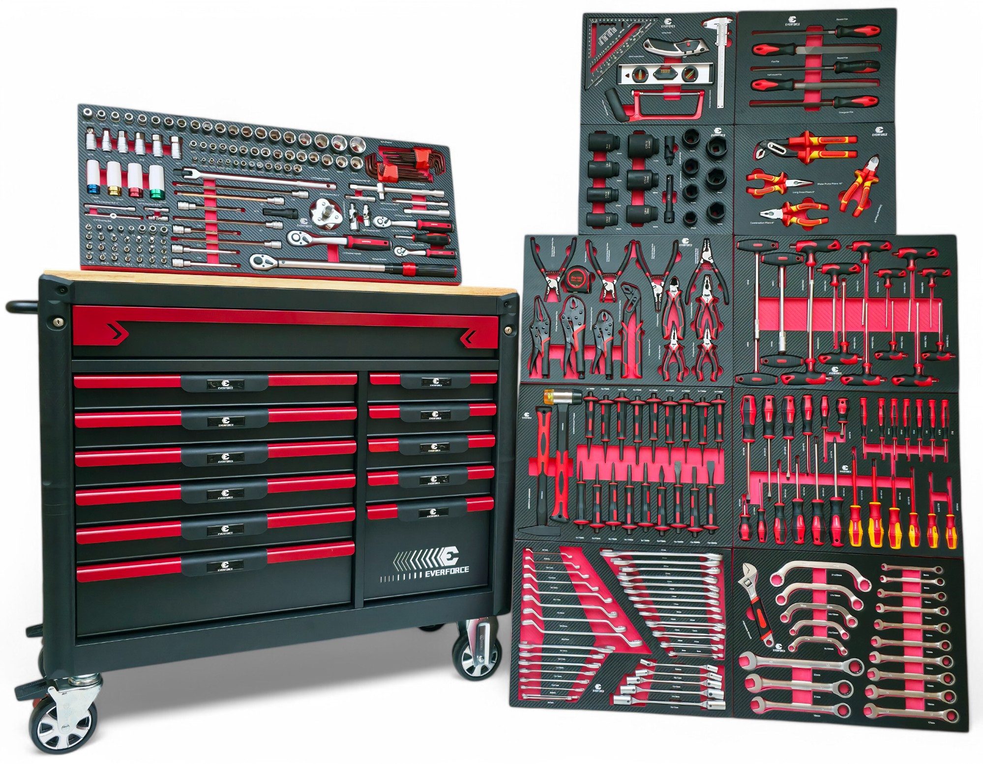 11 Schubladen sind mit über 300 hochwertigen Werkzeugteilen bestückt – ideal für Profi und Heimwerker