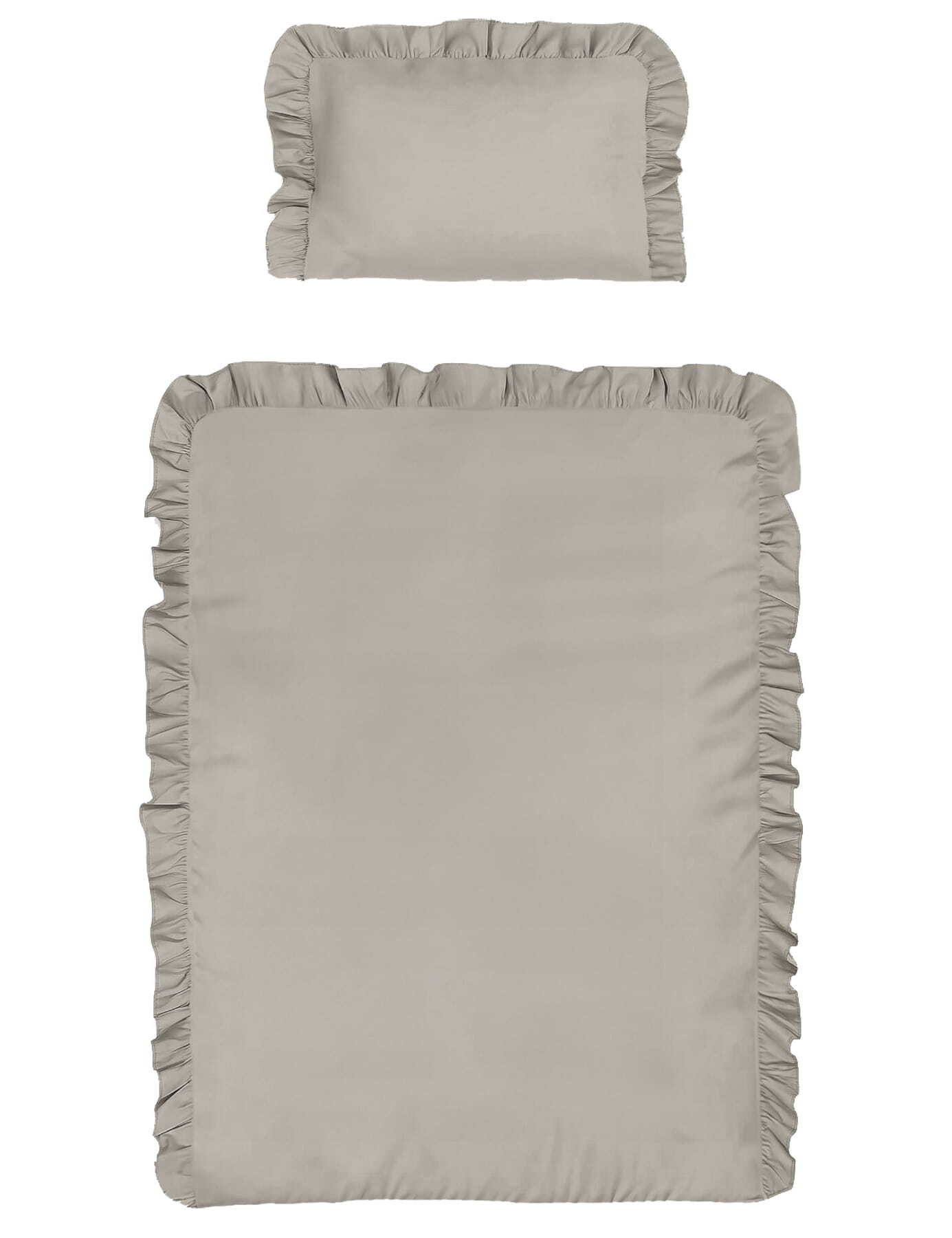 Diese Kinderbettwäsche in zartem Ton bezaubert mit liebevoll gearbeiteten Rüschen und einem schlichten, eleganten Look. Das Design vereint zeitlose Schlichtheit mit einem Hauch Romantik und passt perfekt in liebevoll eingerichtete Kinderzimmer. Der dezente Ton sorgt für eine beruhigende Schlafatmosphäre, während die feinen Volants dem Bett eine kindgerechte, charmante Note verleihen. Wähle diese Bettwäsche, um deinem Kind süße Träume und ein gemütliches, stilvolles Kinderzimmer zu schenken. Für das ultimative Schlafvergnügen deines Kindes ist diese Bettwäsche die perfekte Wahl. Hergestellt aus sorgfältig geprüften Materialien in hochwertiger Qualität, verwöhnt sie die empfindliche Haut deines kleinen Lieblings mit sanfter Zärtlichkeit. Der Reißverschluss sorgt für einfaches Wechseln und Waschen, damit du mehr Zeit mit deinem Kind verbringen kannst. (C02393)