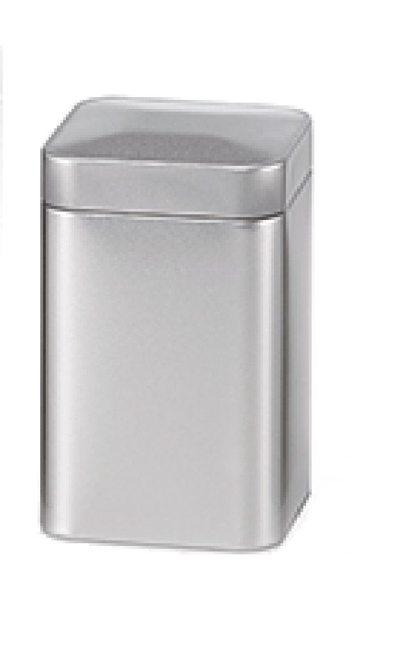 Für die Aufbewahrung Ihres Tees, Teedose mit Stülpdeckel in der Farbe silber. Material: Weißblech. Format: 7 x 7 x 10,9 cm (für 100g Tee)