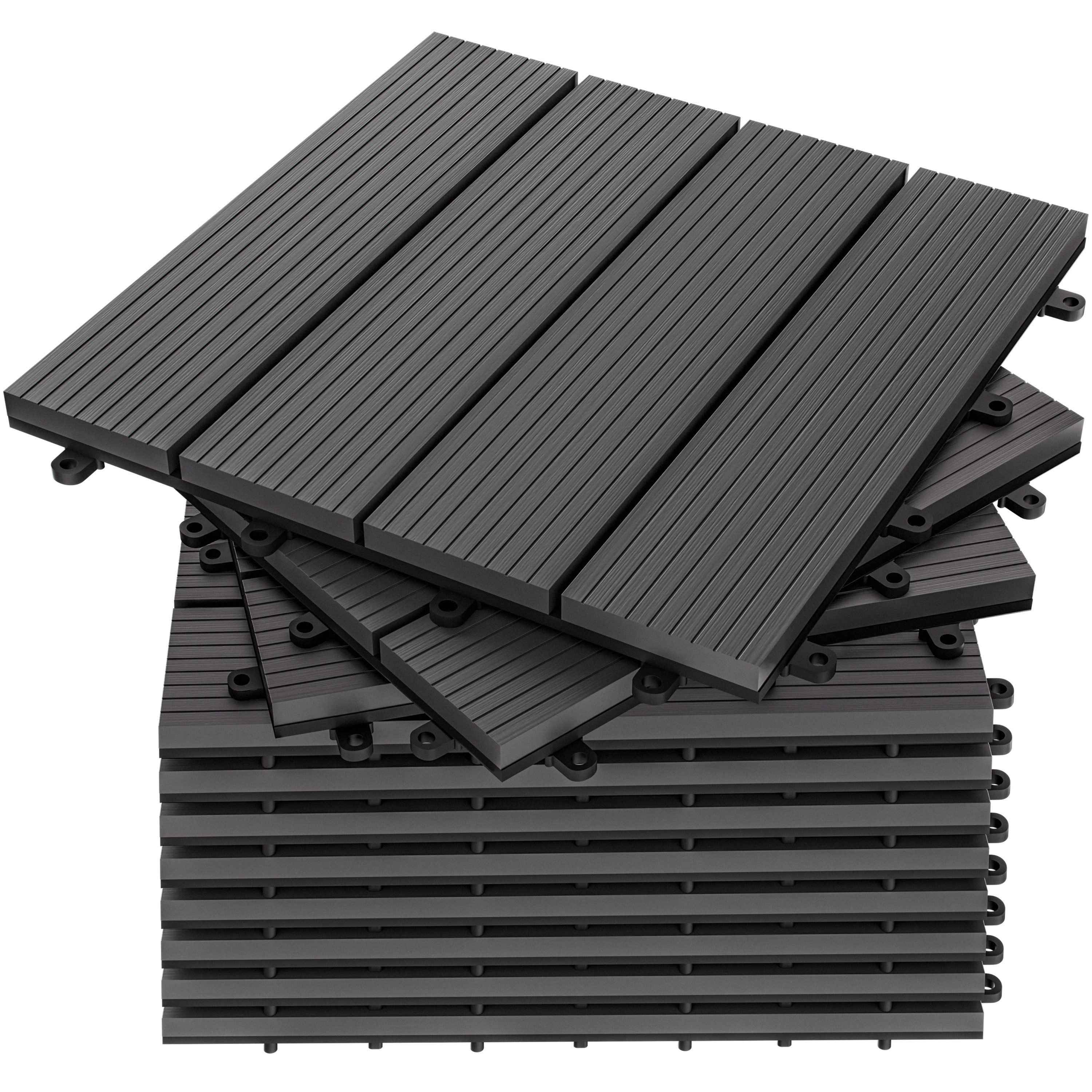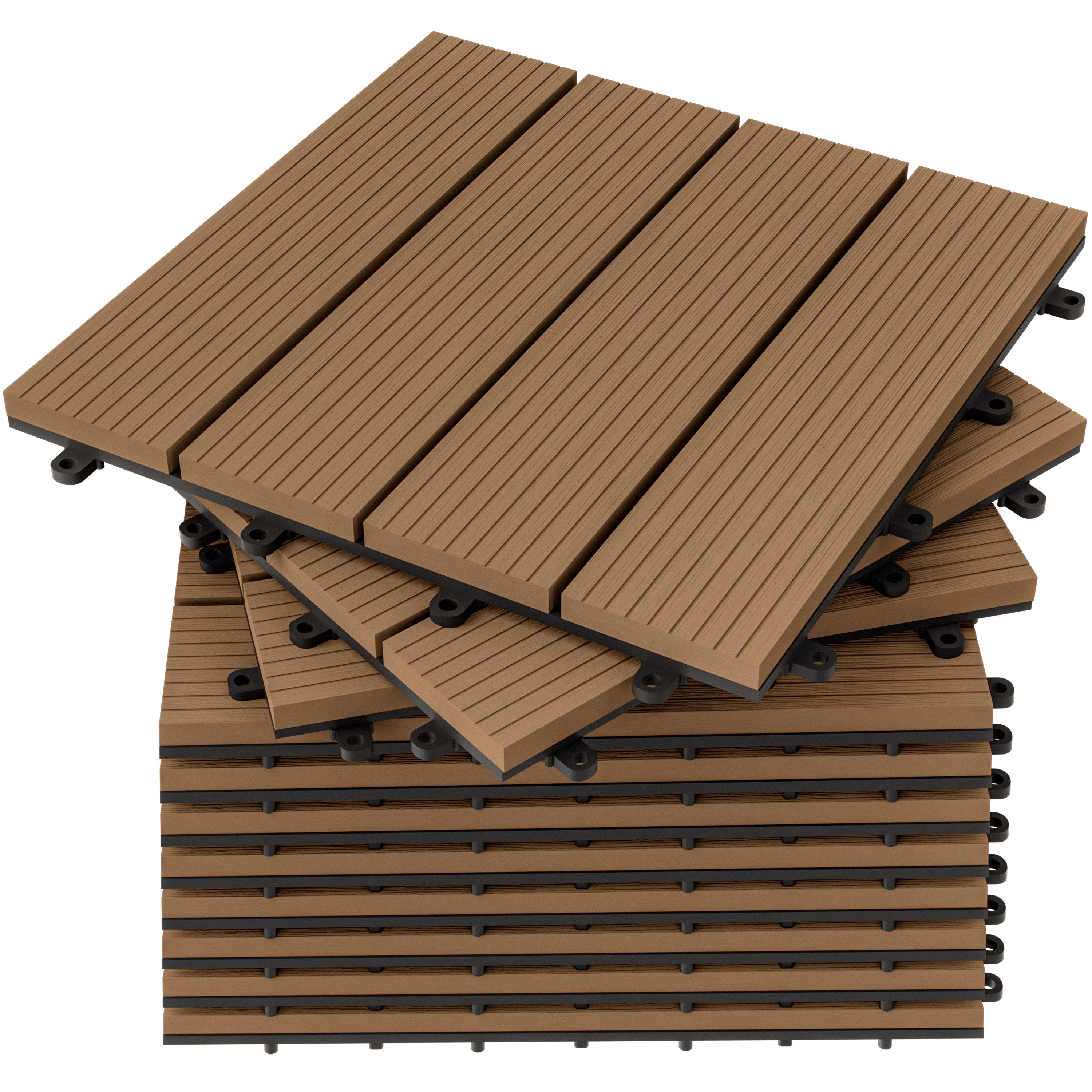 Die hochwertigen Terrassenfliesen von CASARIA® aus WPC-Vollmaterial im Format 30 x 30 cm sind der ideale Bodenbelag für Innen- und Außenbereiche – ob auf dem Balkon, der Terrasse, im Wintergarten oder im Bad. Die wetterbeständigen, rutschfesten Fliesen lassen sich barfuß sicher und angenehm betreten.