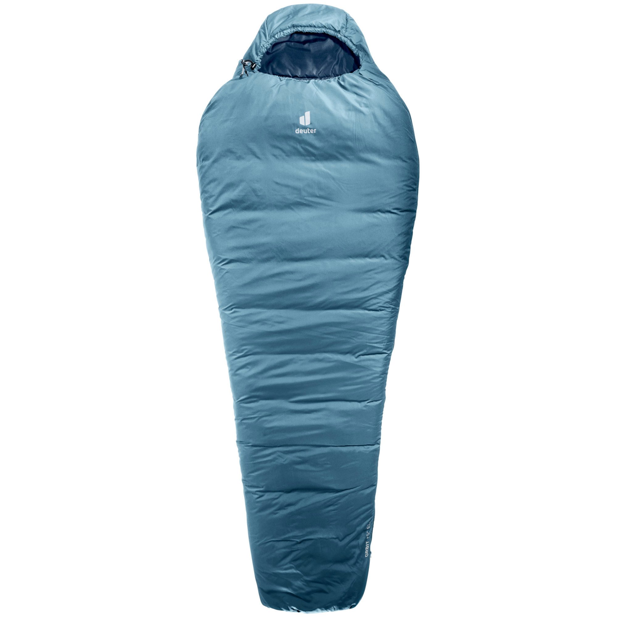 Deuter Schlafsack Orbit +5° EL. Das Außenmaterial des Schlafsacks besteht zu 100% aus recycelten Materialien und ist ohne Nähte. Damit bietet es eine höhere Temperaturperformance und schützt vor dem Eindringen von Nässe. Die 360° Verteilung der High-Loft Hollowfibre Füllung sorgt zudem für ein angenehmes Wärmeklima im Schlafsack. Durchdachte Details wie Klemmschutz am Reißverschluss, Wertsachen-Innentasche und Konturfunktionskapuze sowie das robuste, leistungsfähige Obermaterial machen den Schlafsack zum strapazierfähigen und langjährigen Begleiter für den Sommer. Koppelbar. Rundum Wärmeisolation. Shell-Außenmaterial ohne Nähte sorgt für höhere Temperaturperformance und schützt vor Eindringen von Nässe. Leichte Handhabung durch unterschiedliche Schnürzüge an der Kapuze – auch im Dunkeln. Reißverschluss-Klemmschutzband. 2-Wege-Reißverschluss. Wertsacheninnentasche. Mumien-Komfortschnitt. Zu 50 % recycled. PFC frei. Gewicht: 98 g Packsack. Volumen: 12 Liter. Füllgewicht: 125g. Schulterbreite: 79 cm. Körpergröße bis: 185-200 cm. Fußbreite: 46 cm. Packmaß: ø 24 cm x 46 cm. Füllmaterial: HIGH-LOFT HOLLOWFIBRE. Hauptmaterial: HIGH-LOFT HOLLOWFIBRE.